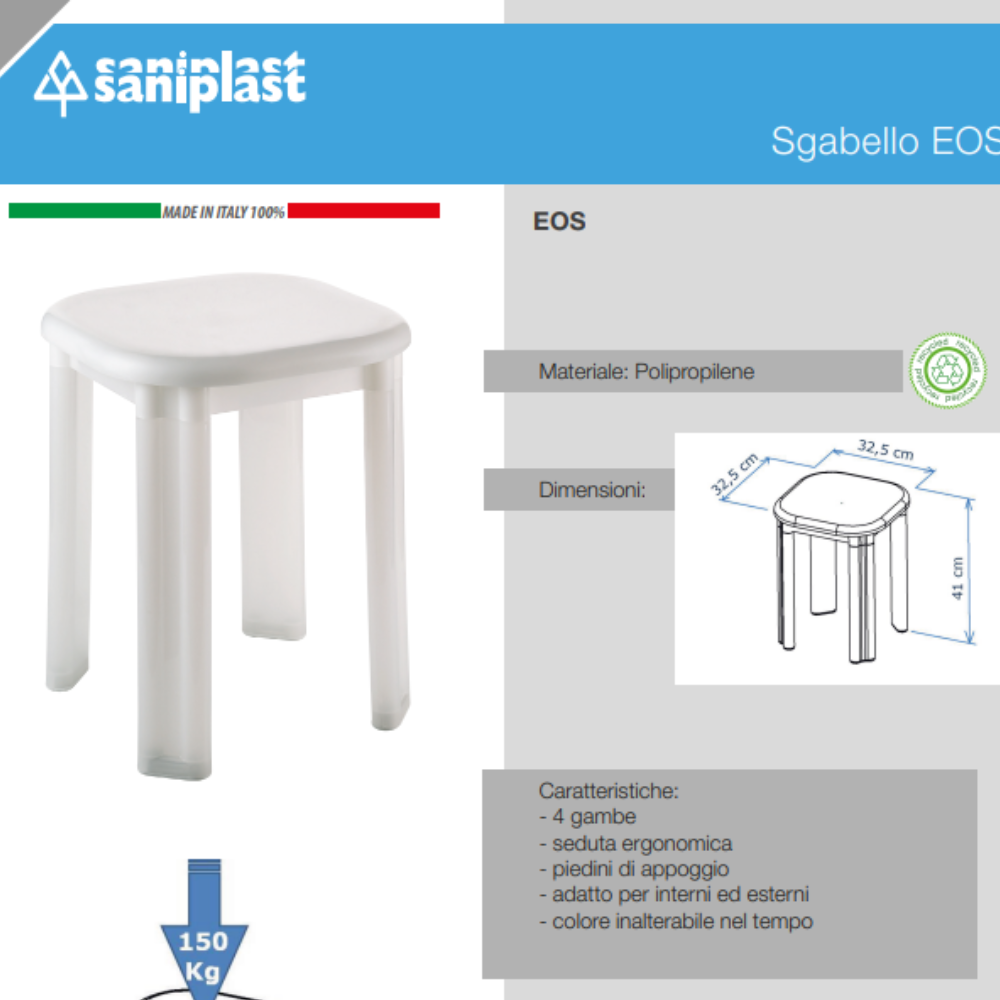Sgabello in polipropilene bianco per arredo bagno Eos
