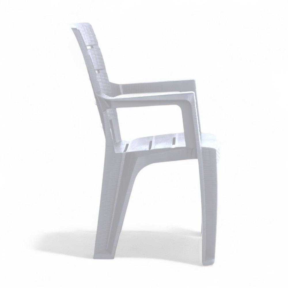 10 Sedie con braccioli impilabile effetto rattan in resina bianca da esterno 56x44xH8...