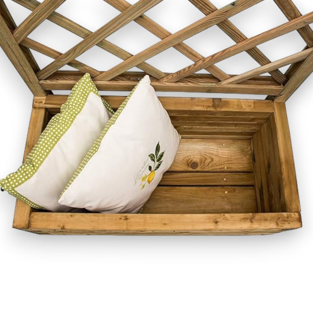 Fioriera in legno con pannello 180x90 cm grigliato a rombi e vaso portafiori da giard...