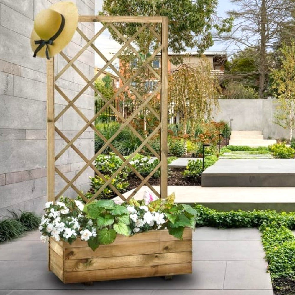 Fioriera in pino impregnato con traliccio 43x80xH180 cm