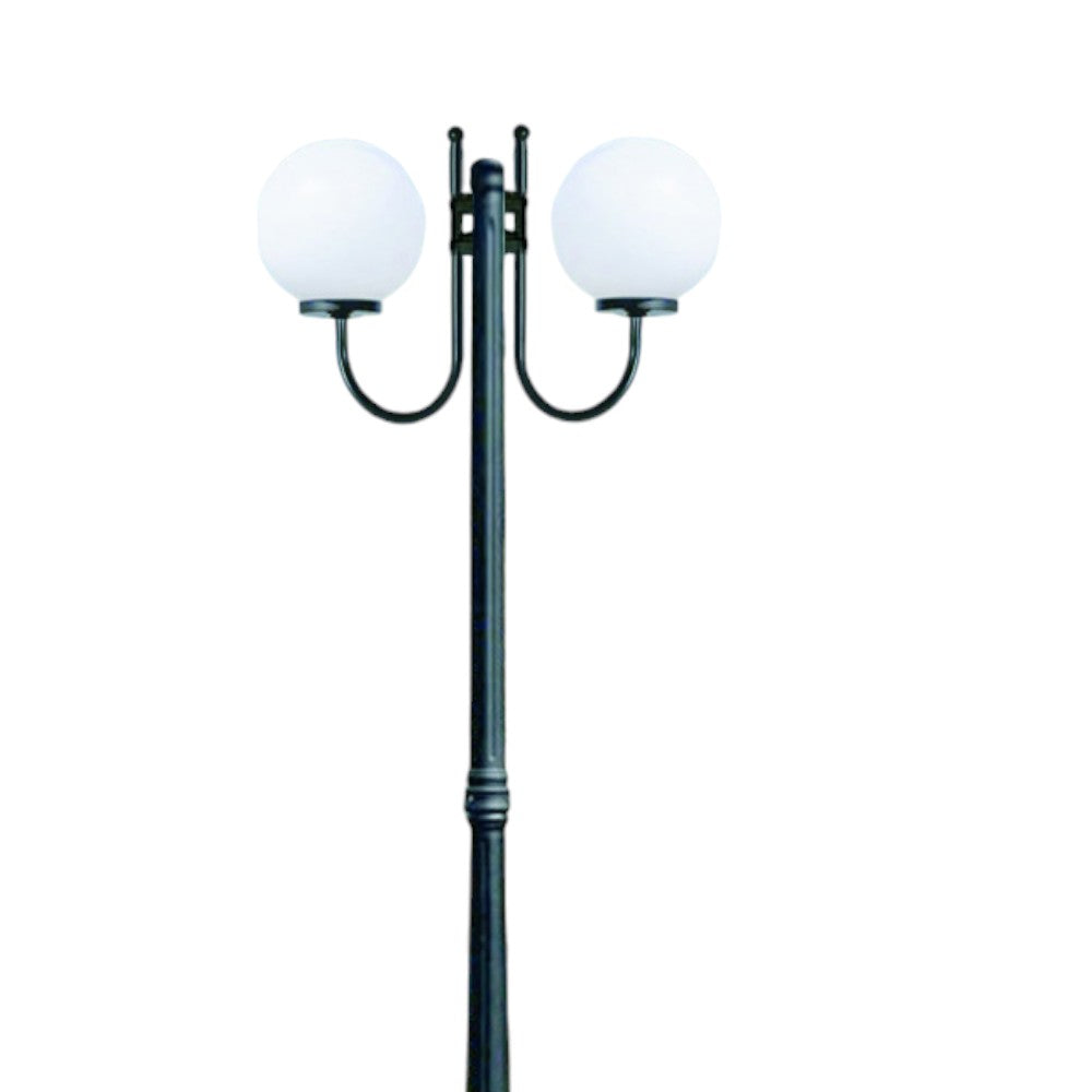 Lampione su palo nero con sfera in policarbonato 100W IP44 altezza 230cm struttura in...