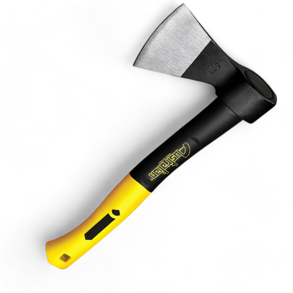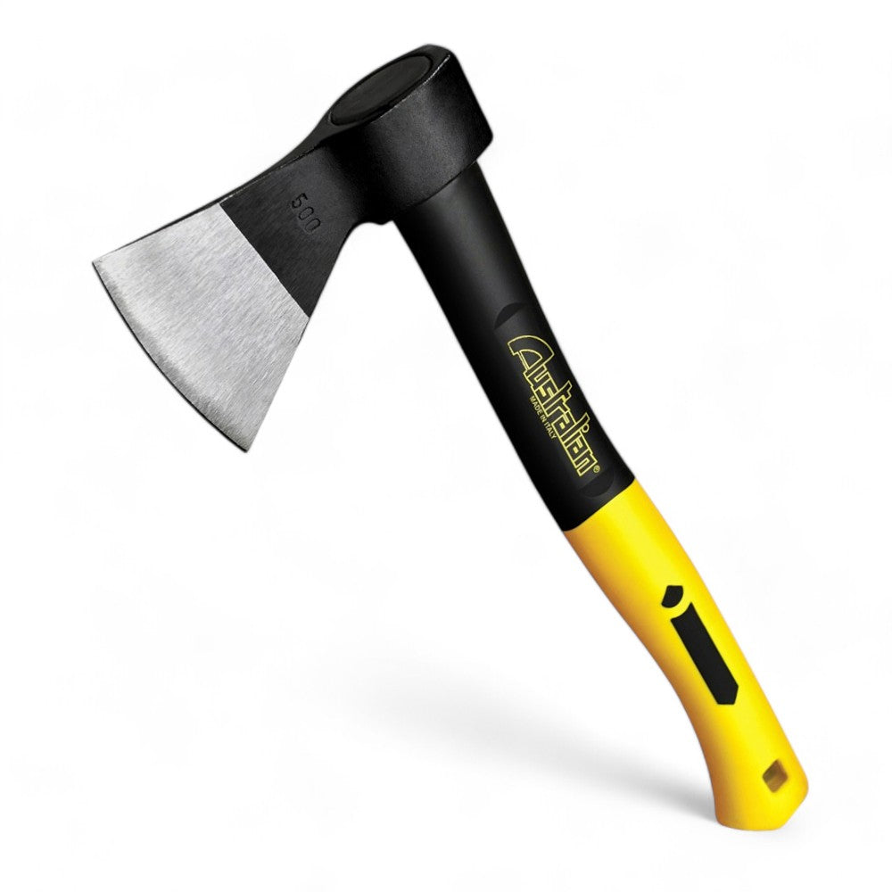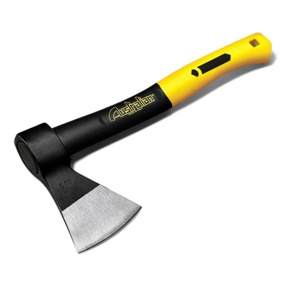 Accetta con manico in fibra di vetro e impugnatura grip elastica per taglio e lavori ...