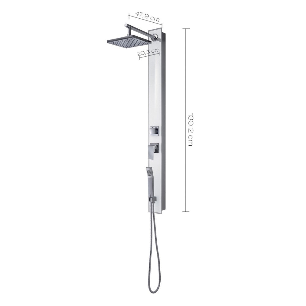 Pannello doccia in acciaio inox h155 cm con getto a cascata e deviatore acqua a 4 vie...