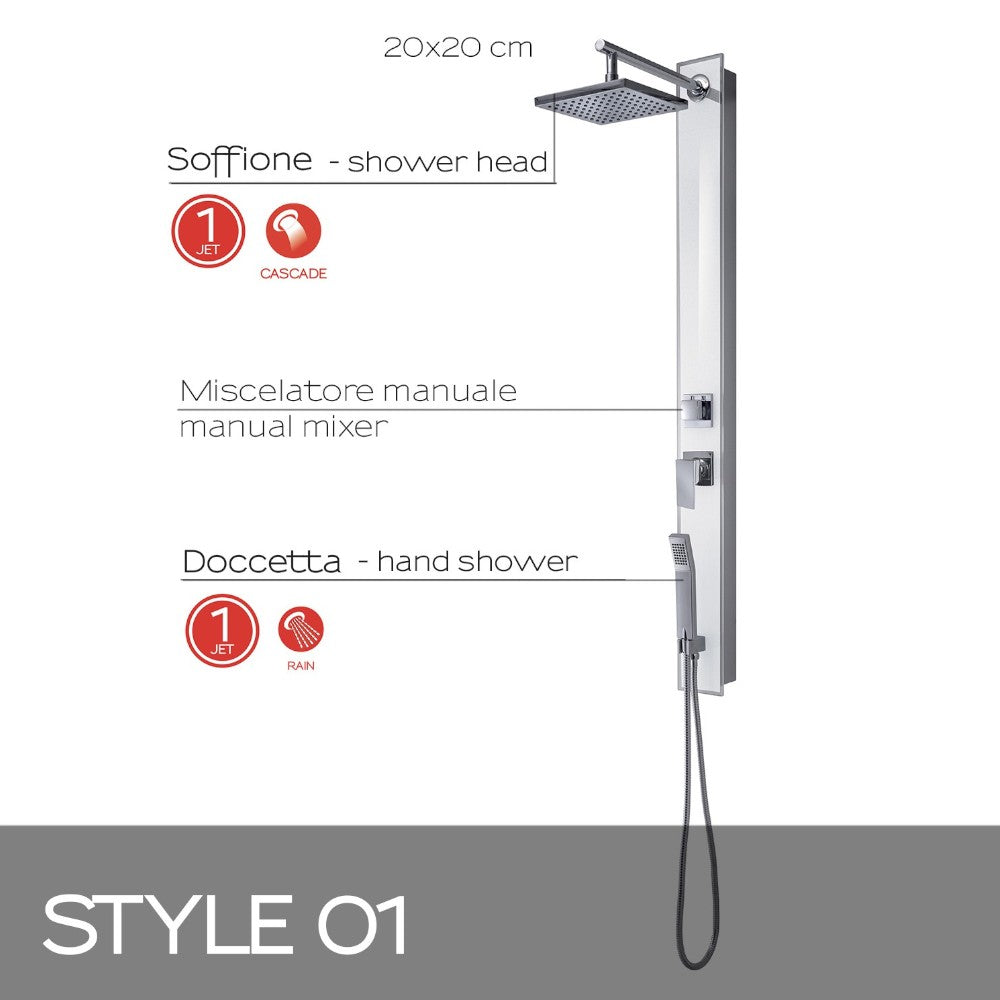 Pannello doccia in vetro temperato e acciaio inox h130 cm con miscelatore manuale Sty...