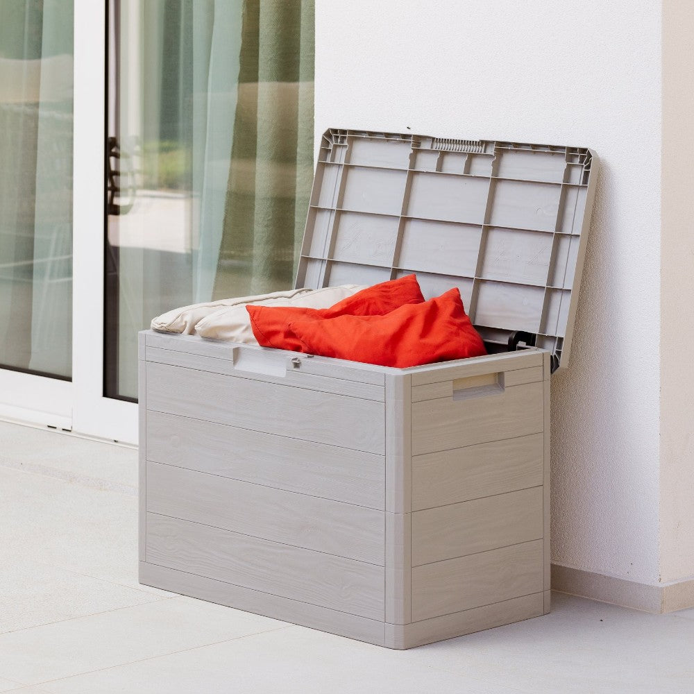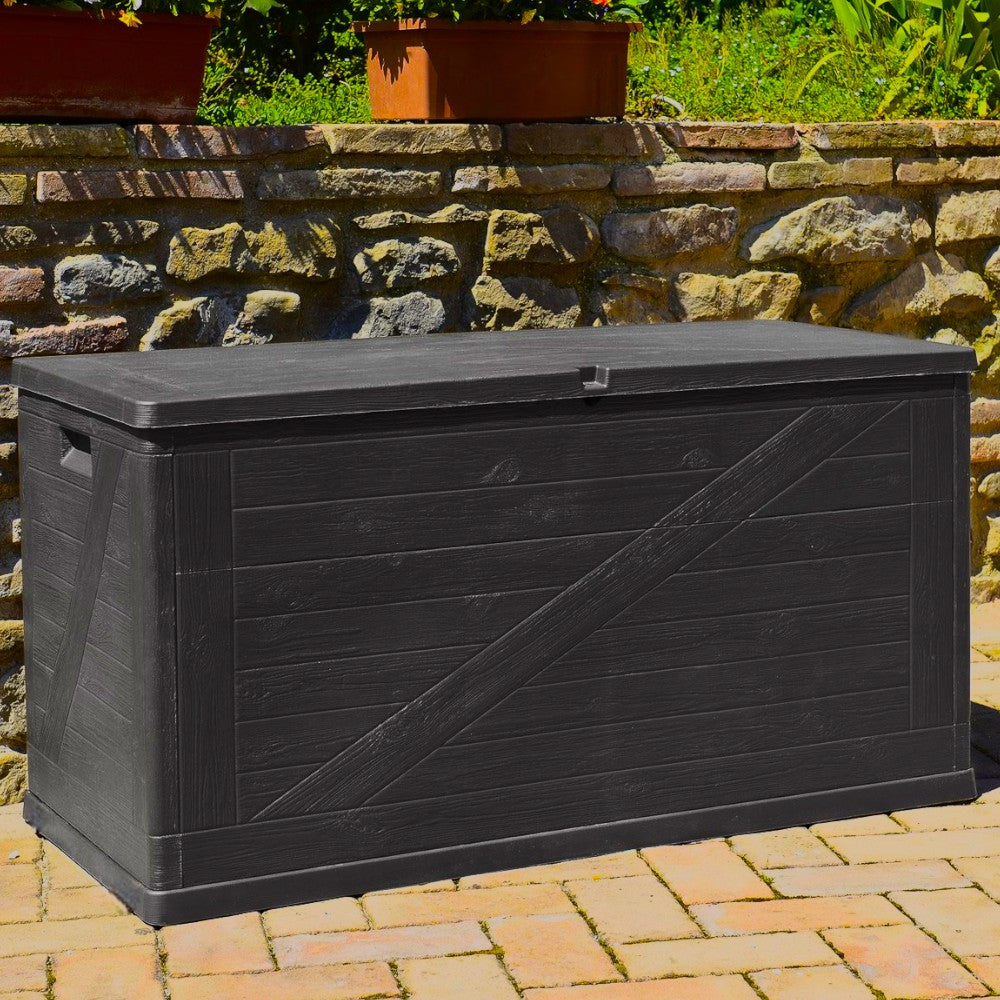 Baule contenitore da esterno in resina antracite effetto legno 280 lt