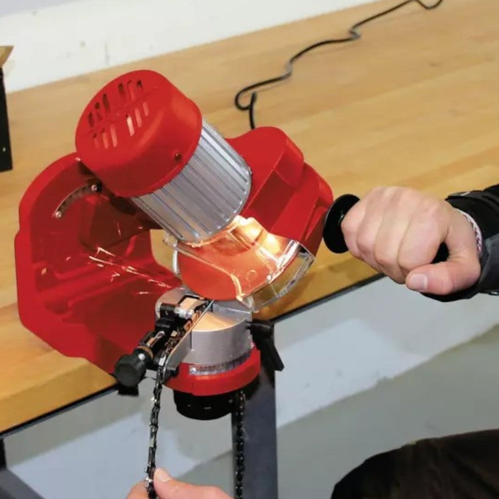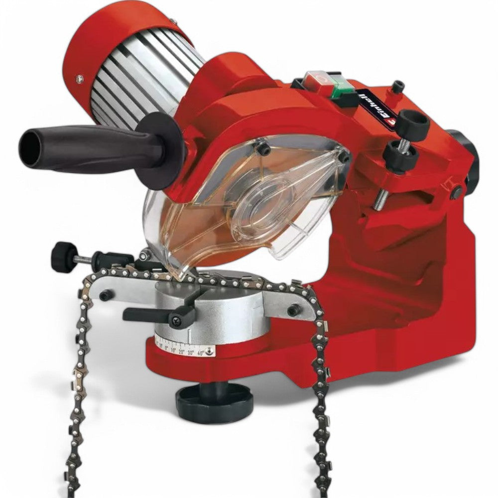 Affila catena con regolazione dell'angolo tagliente e dispositivo di tensione della c...