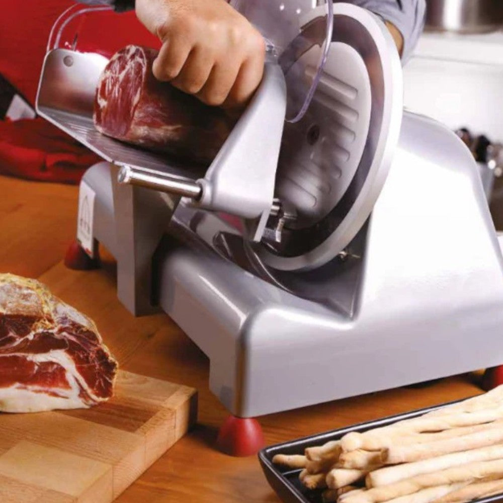 Affettatrice lama 195 mm struttura in alluminio motore 110 watt per salumi carni form...