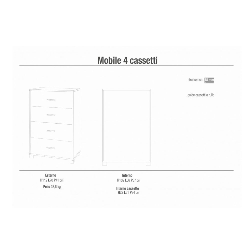 Cassettiera a 4 cassetti da interno camera da letto in legno nobilitato bilaminato Li...