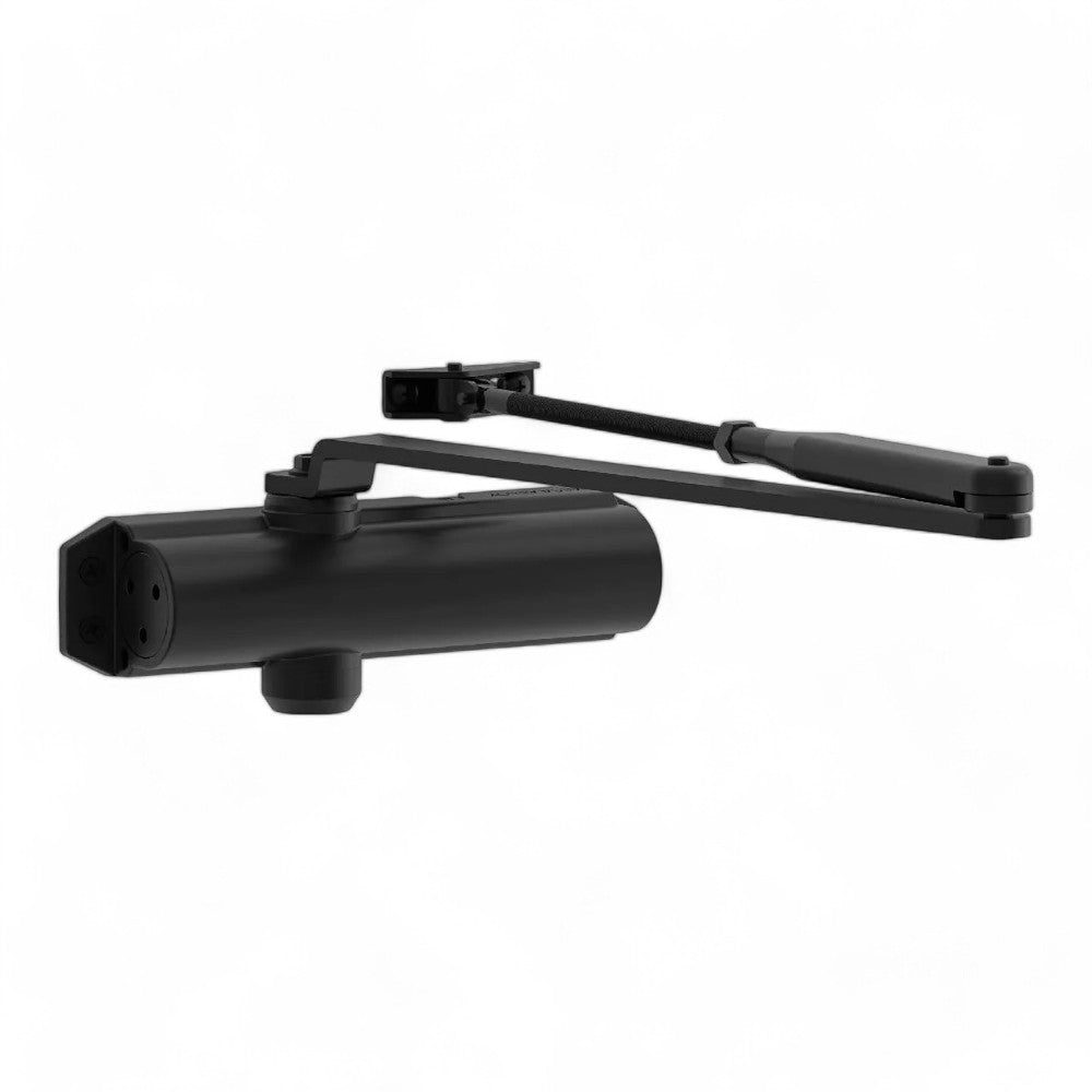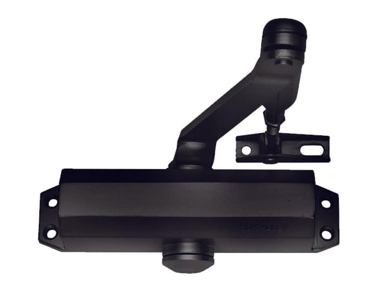 Chiudiporta aereo nero con arresto forza variabile per porte fino a 110 cm corpo in a...