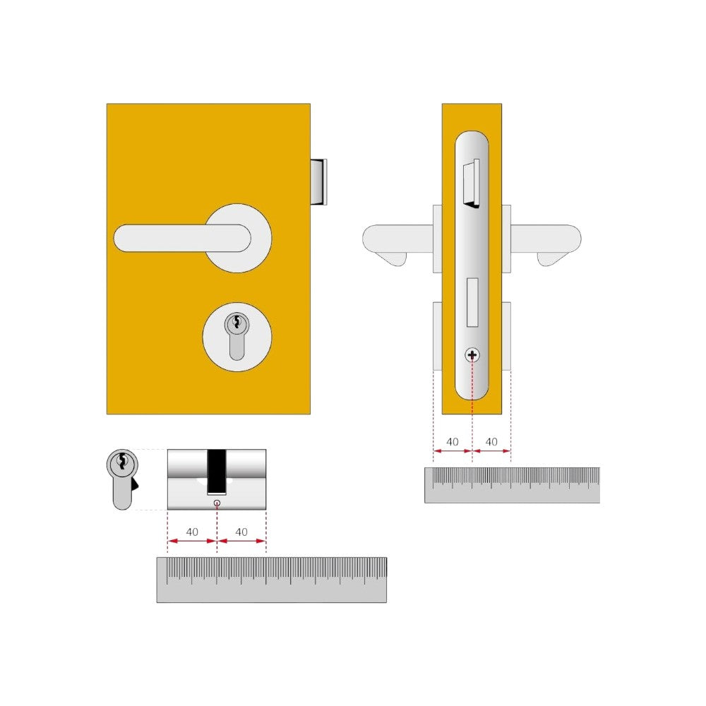 Cilindro esterno fisso per serrature da applicare con chiave a 5 spine e kit di fissa...
