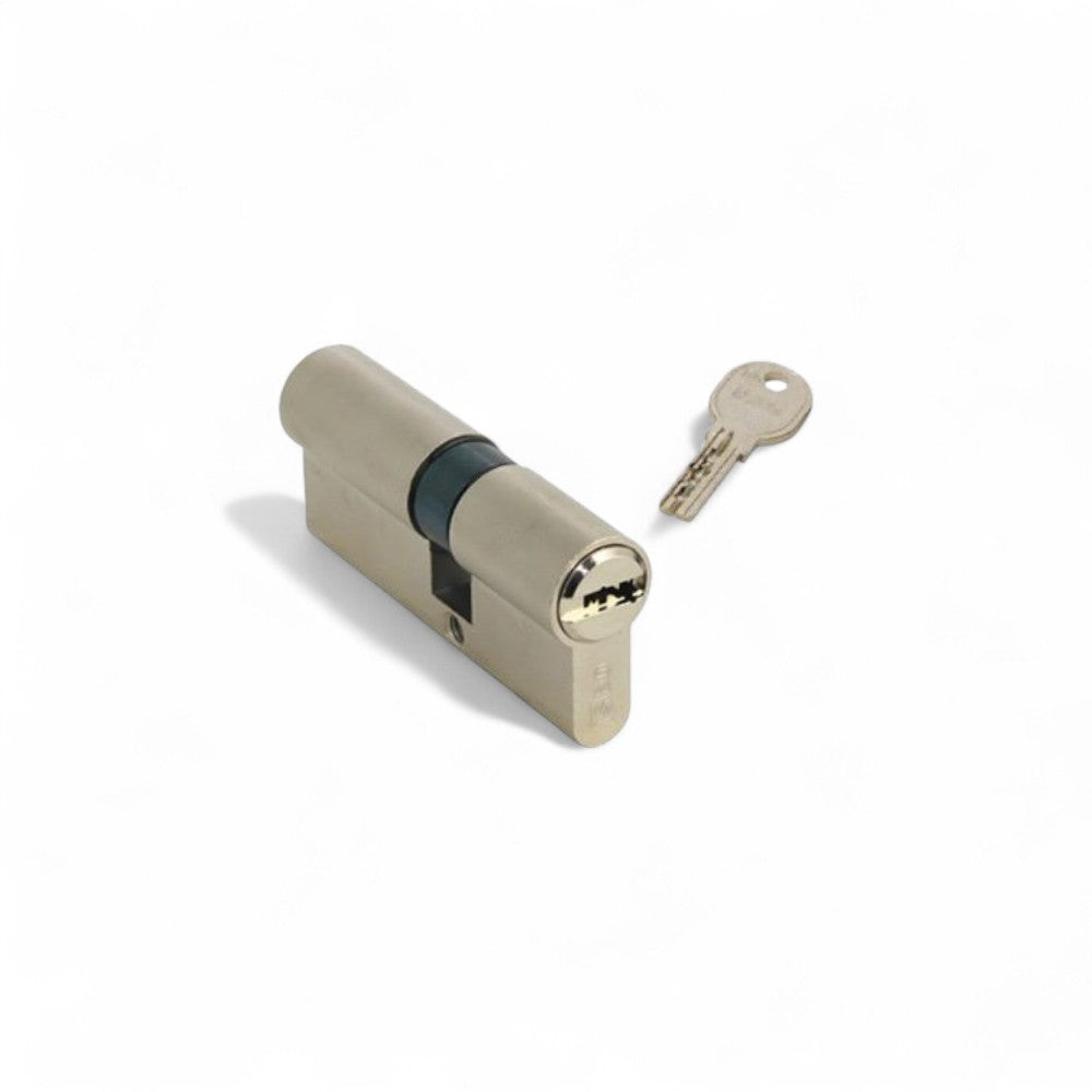 Cilindro a infilare in ottone con 3 chiavi nichelate e 5 spine per porte di sicurezza