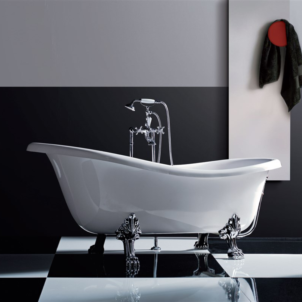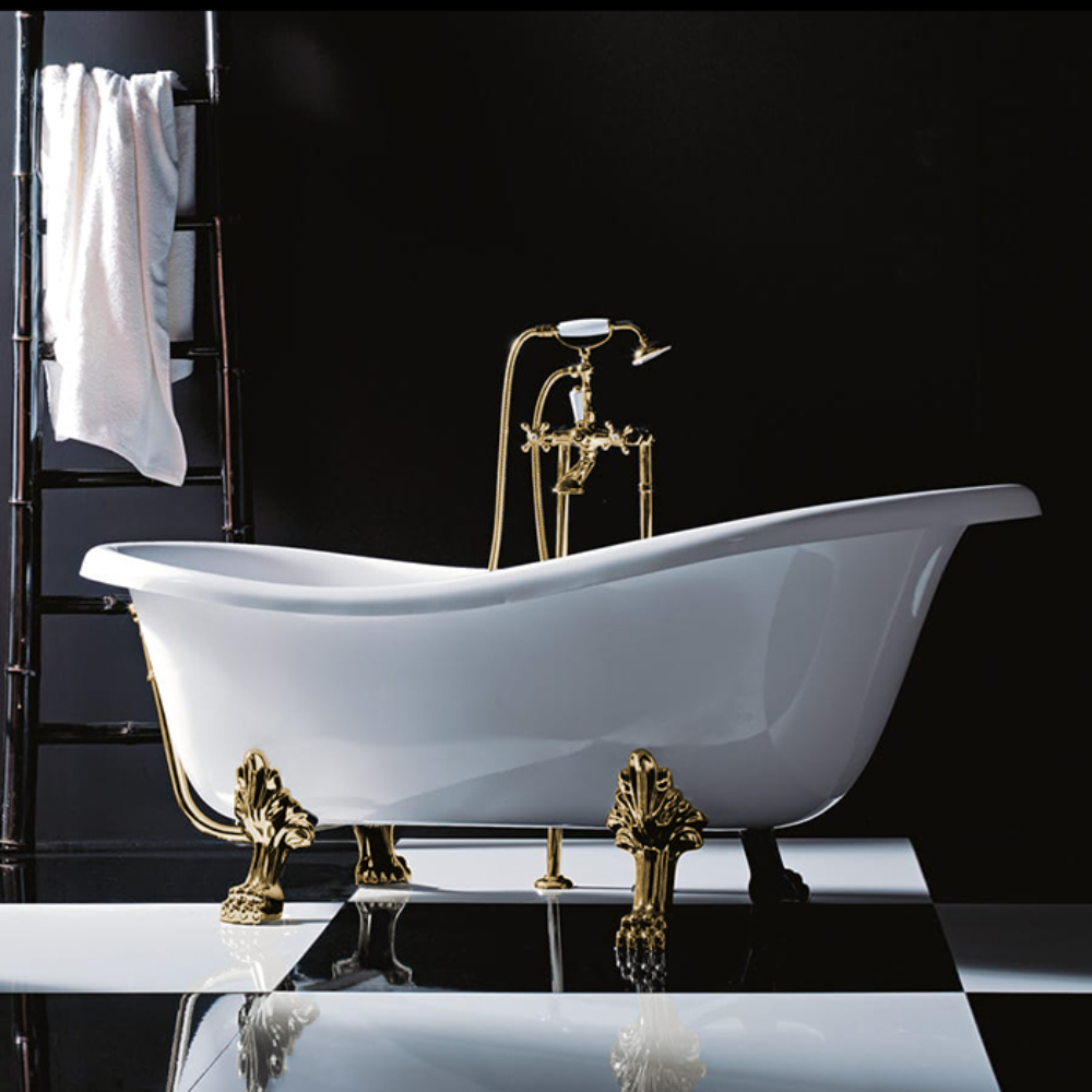 Colonna per vasca epoca con rifinitura cromo e bronzo