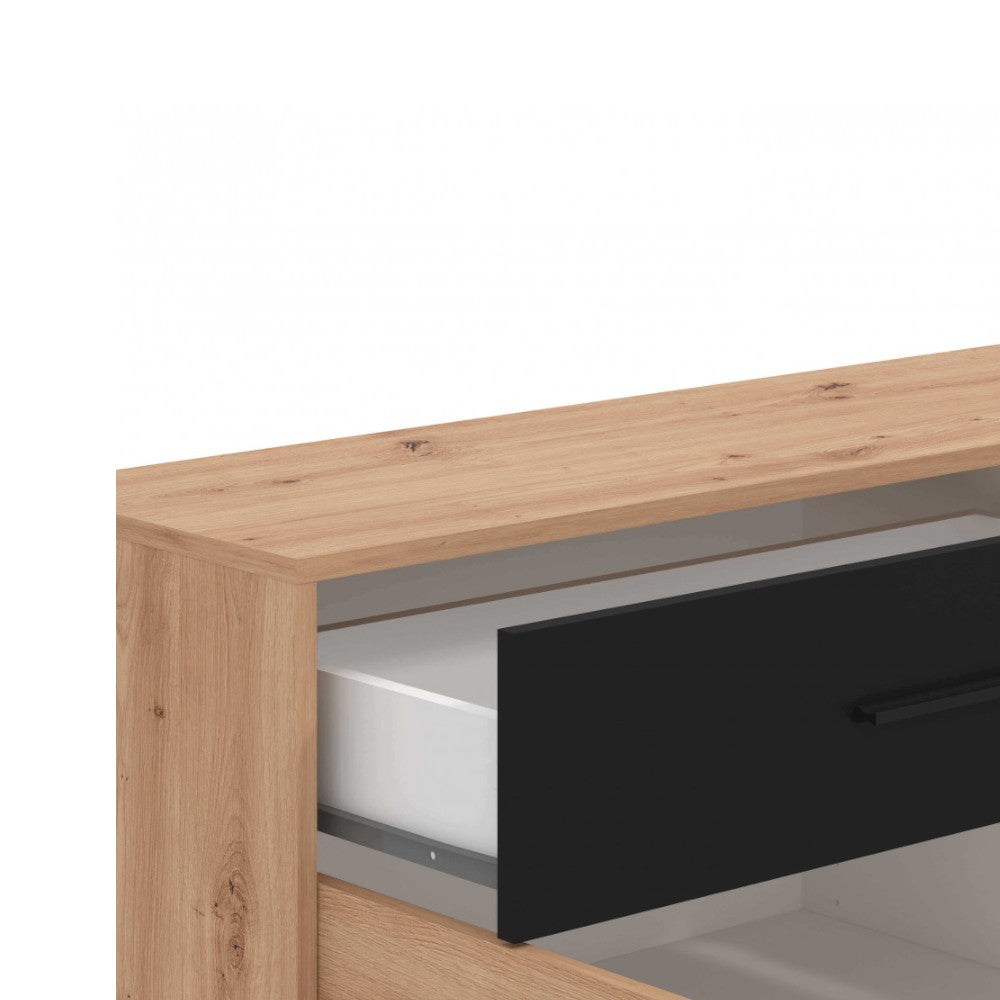 Mobile basso porta tv da interno soggiorno con 3 cassetti e ripiano laterale in legno...