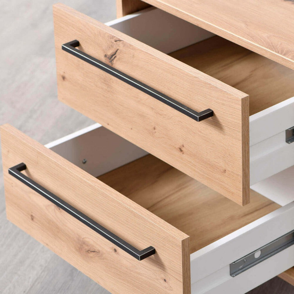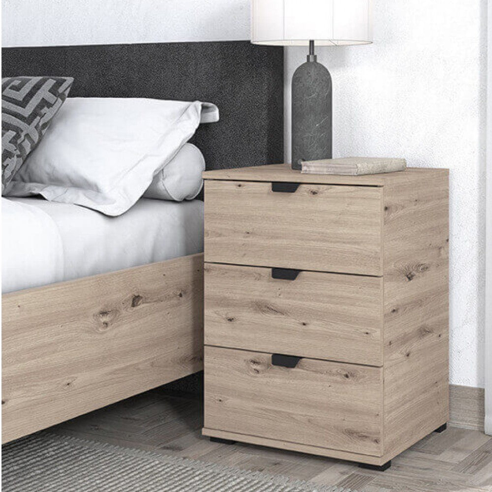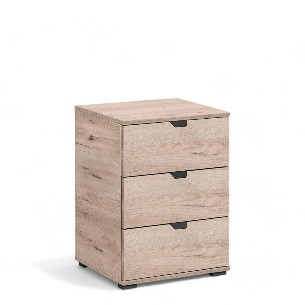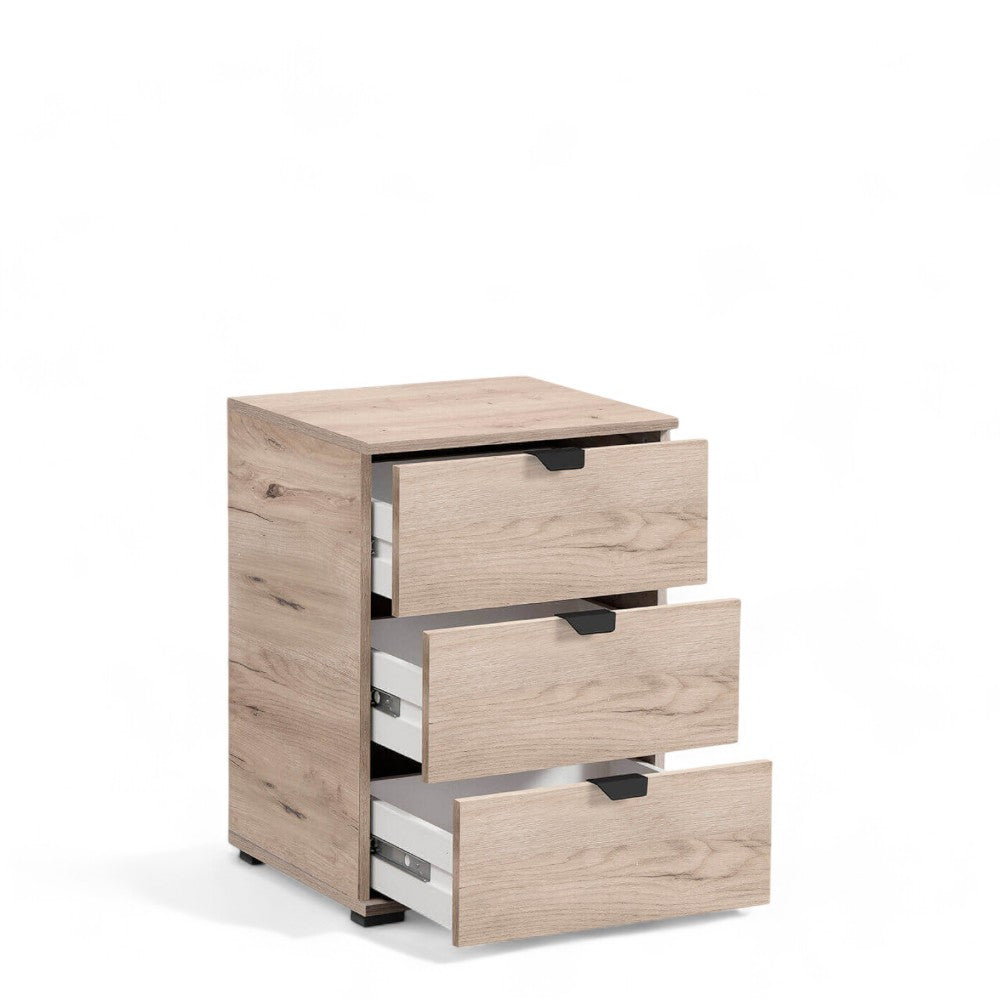 Comodino da interno in legno bianco con 3 cassetti color legno naturale Larry