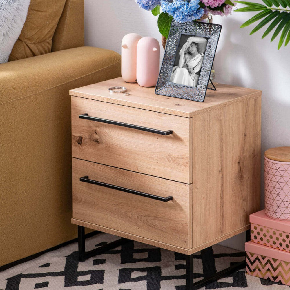 Comodino in legno con 2 cassetti rovere grigio 44,5x33x43 cm per camera da letto