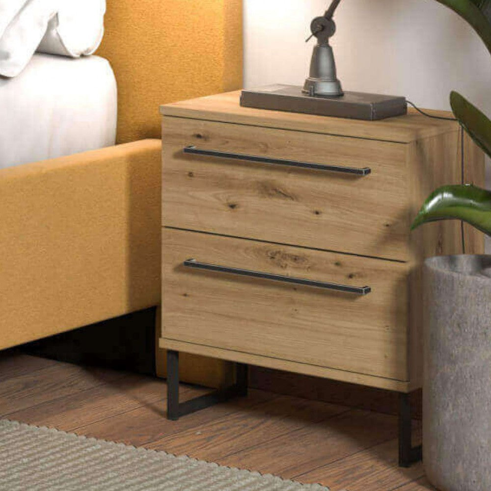 Comodino da interno in legno di pino con 2 cassetti Linea Classic