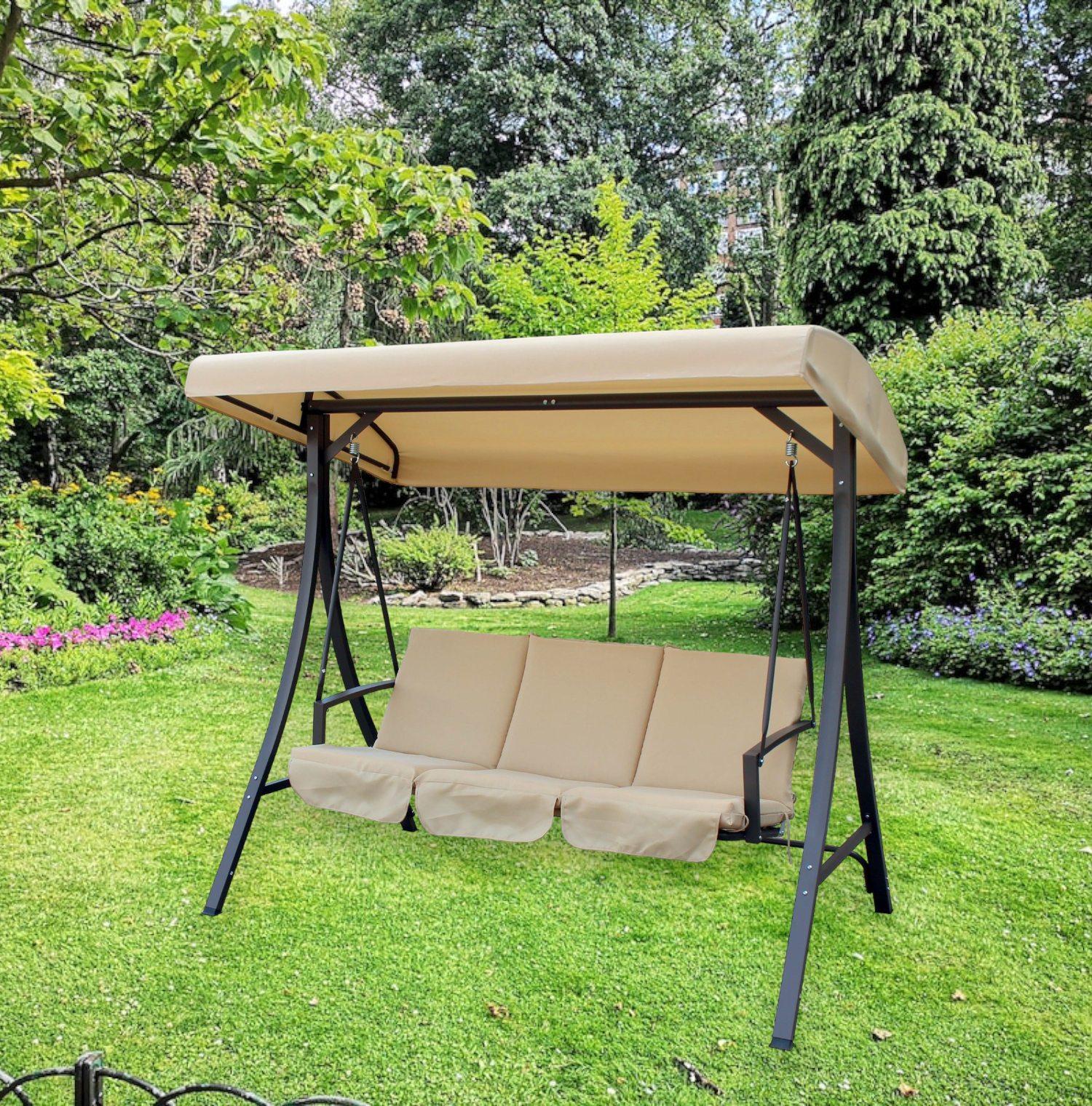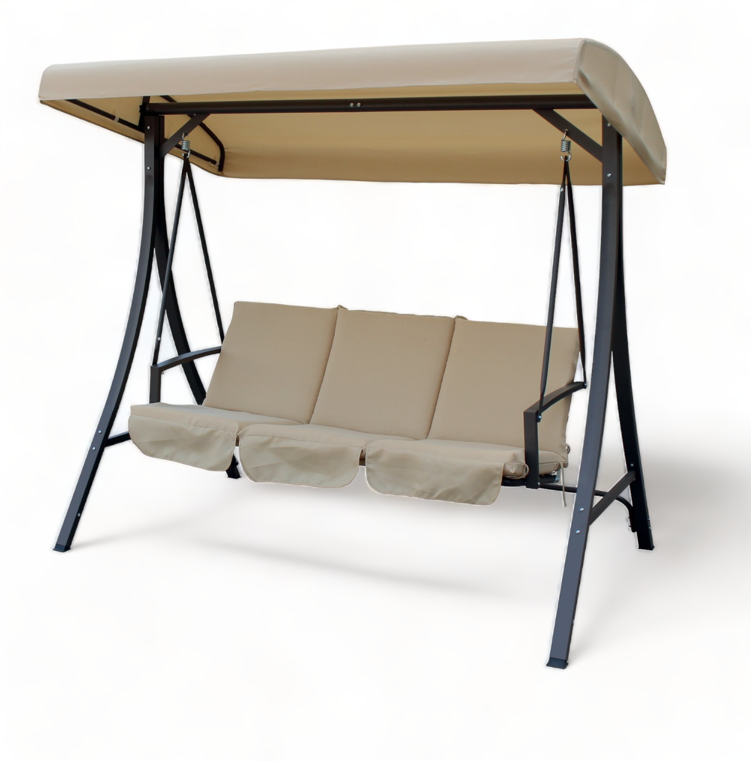 Dondolo tre posti in acciaio con cuscini e tettuccio beige Bolero