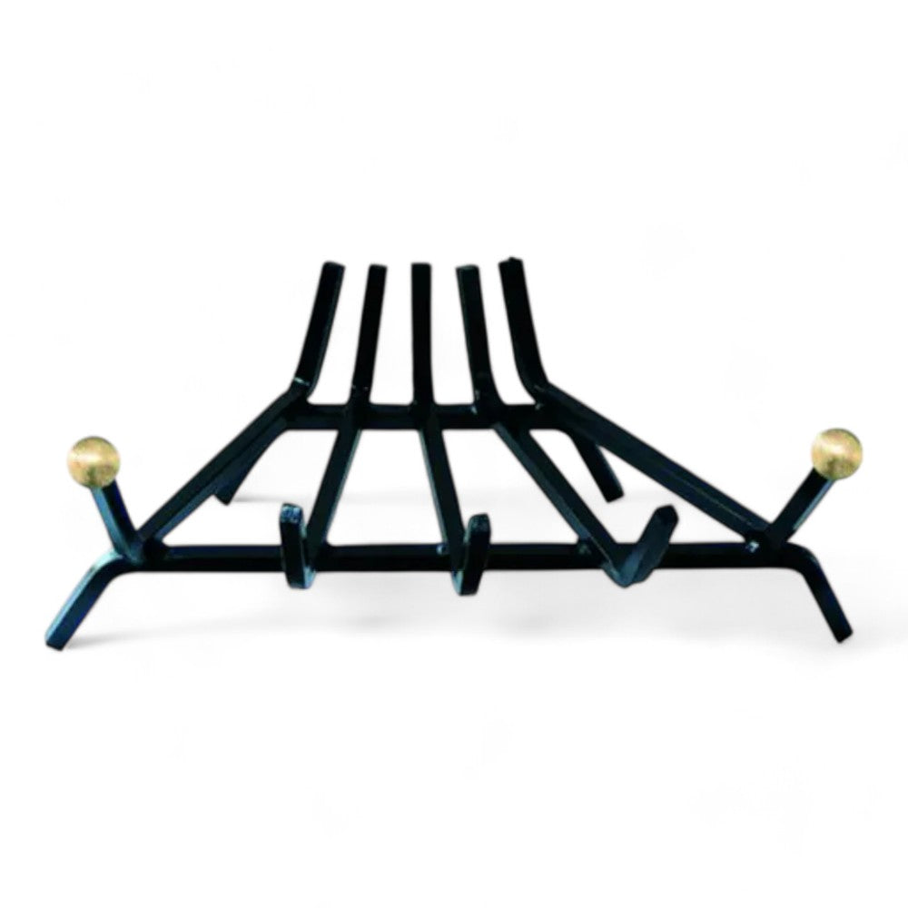 Brucialegna triangolare per camino ferro battuto nero con pomoli ottone robusto e sta...