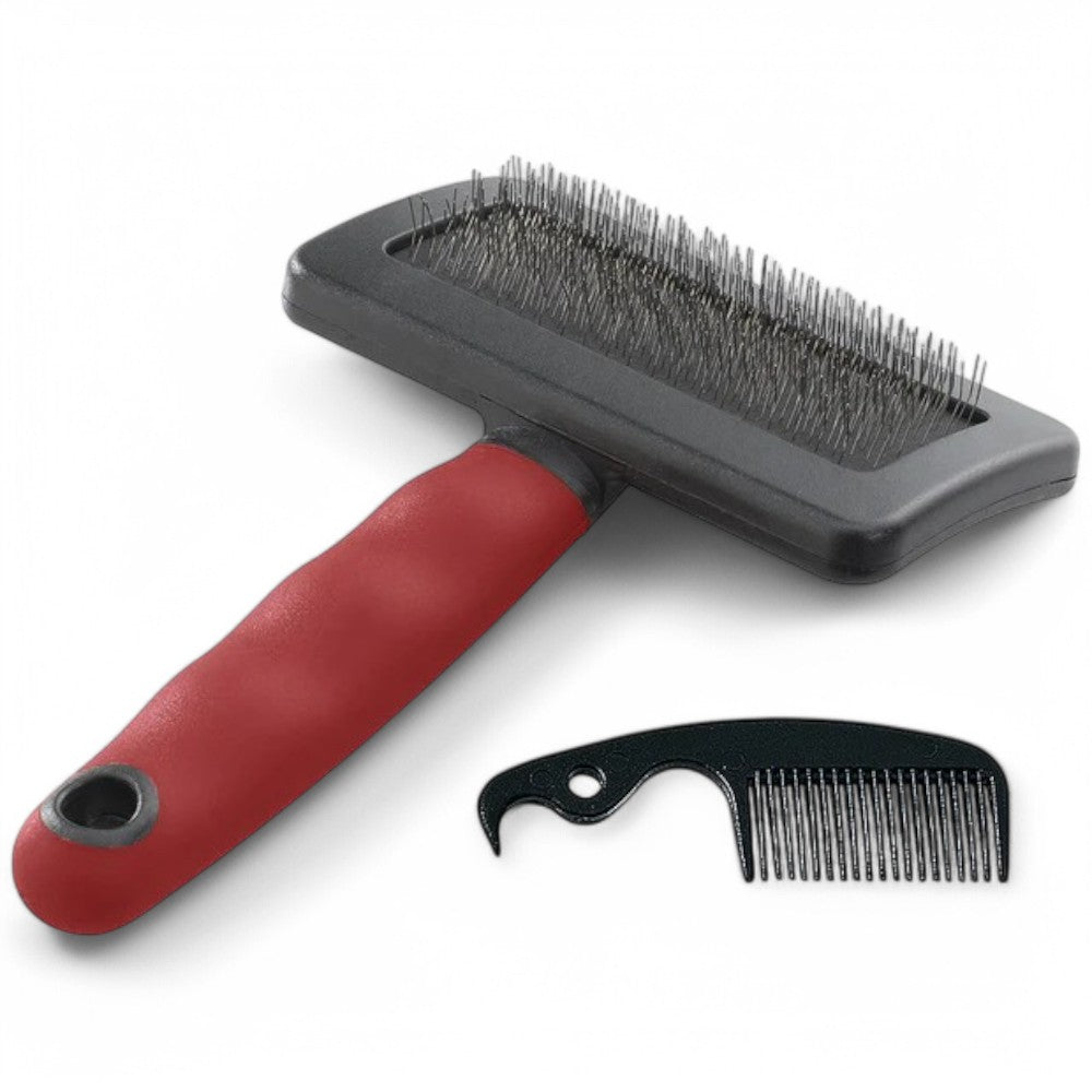 Spazzola cardatrice per cani pelo medio e lungo con fili in acciaio inox manico antis...
