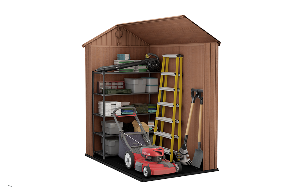 Casetta cottage da giardino porta attrezzi in resina effetto legno Montebianco Marrone
