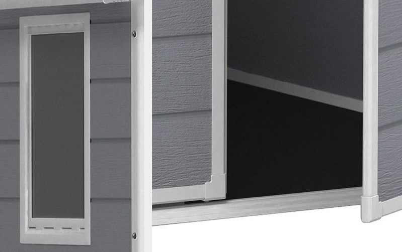 Casetta cottage da giardino porta attrezzi in resina effetto legno Cortina Grigio Chiaro