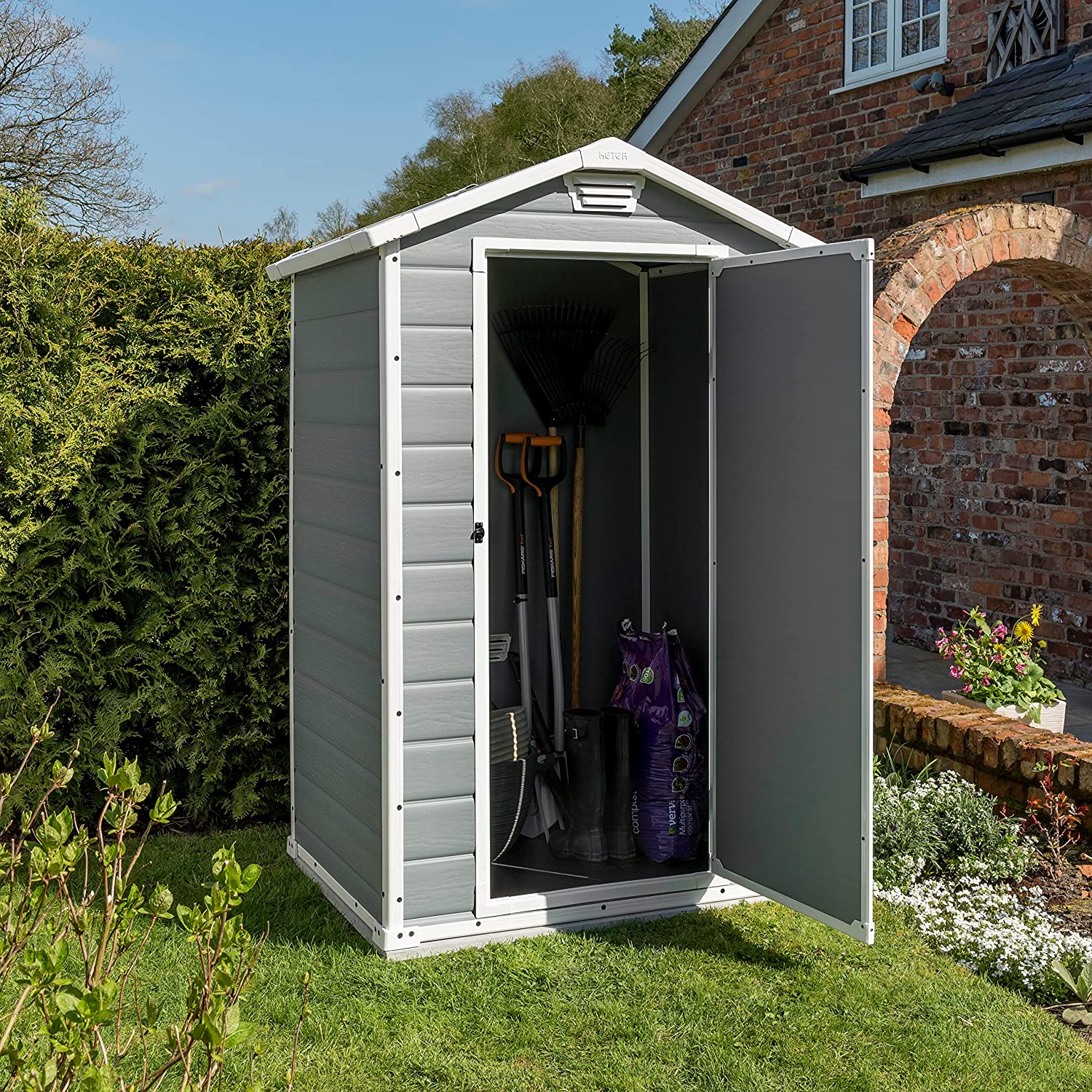 Casetta cottage da giardino porta attrezzi in resina effetto legno Montebianco Grigio...