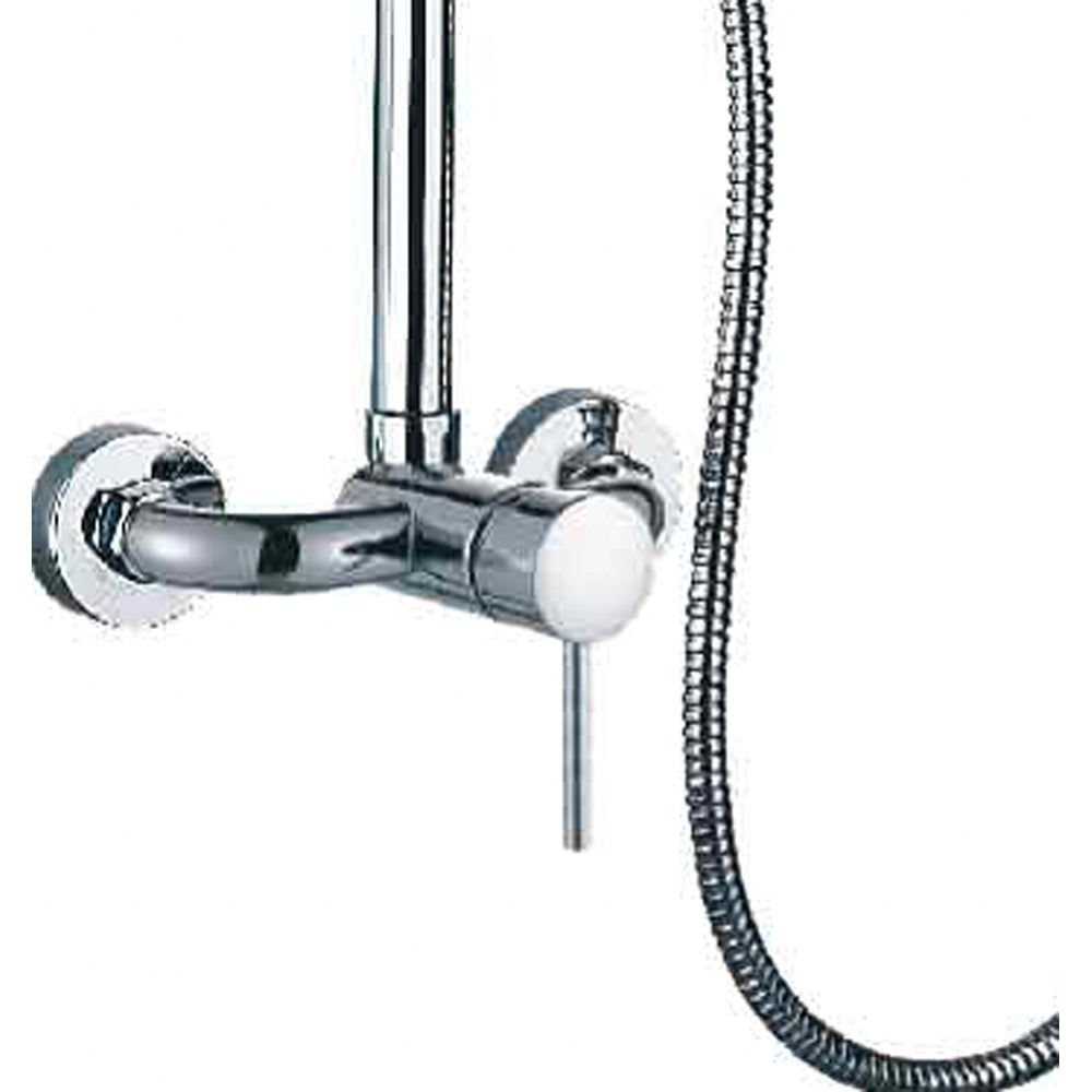 Set colonna doccia in acciaio tonda cromata con soffione mono getto e doccetta in ABS...