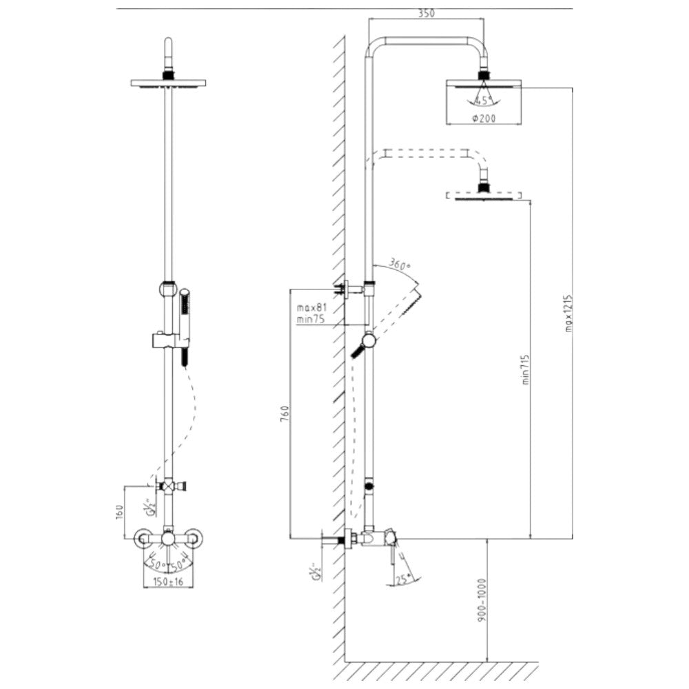 Colonna doccia cromata con soffione tondo 20 cm e doccetta con riduttore 10 cm idealduo