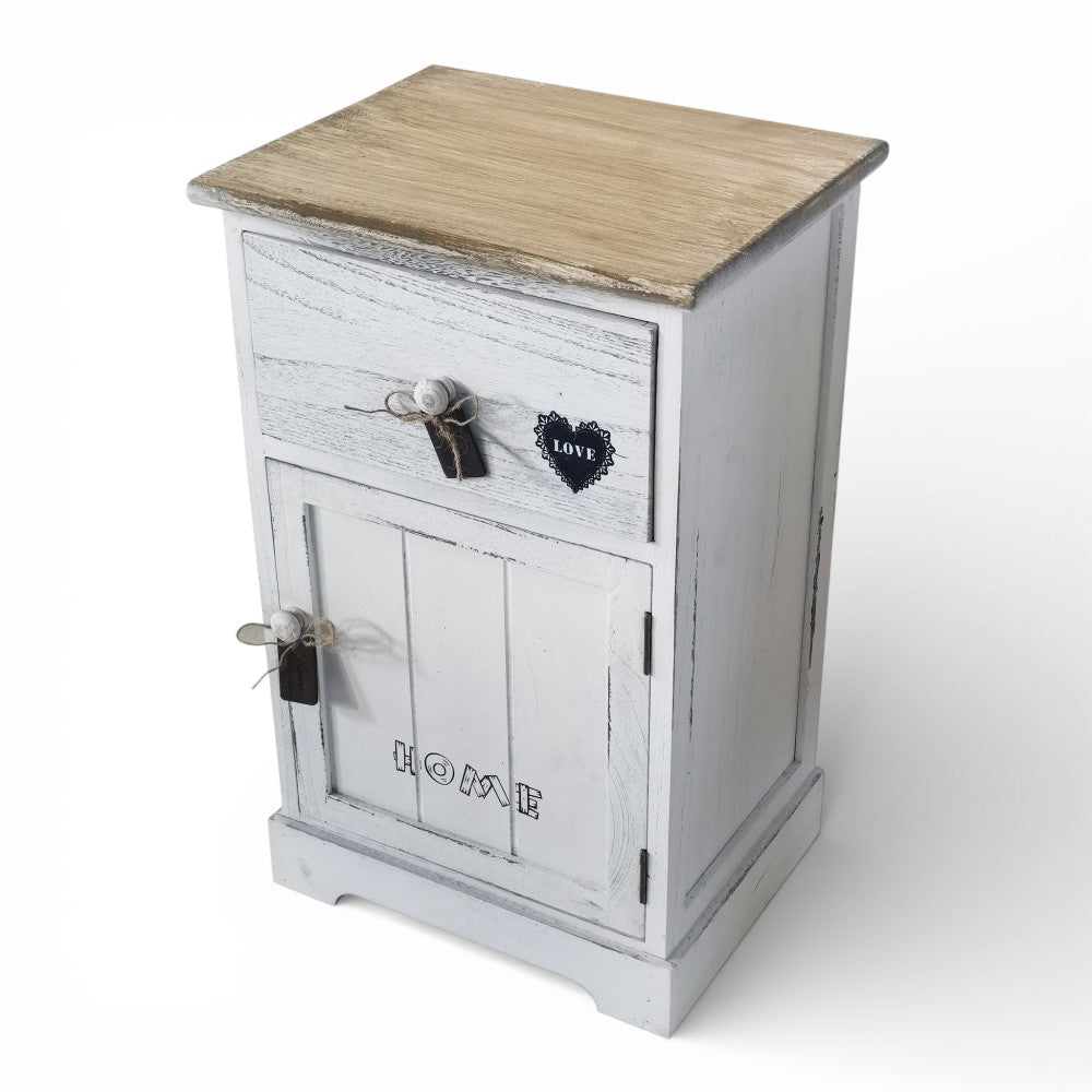 Mobile mobiletto comodino bianco e beige con 1 cassetto e 1 anta 35x28xH56 cm