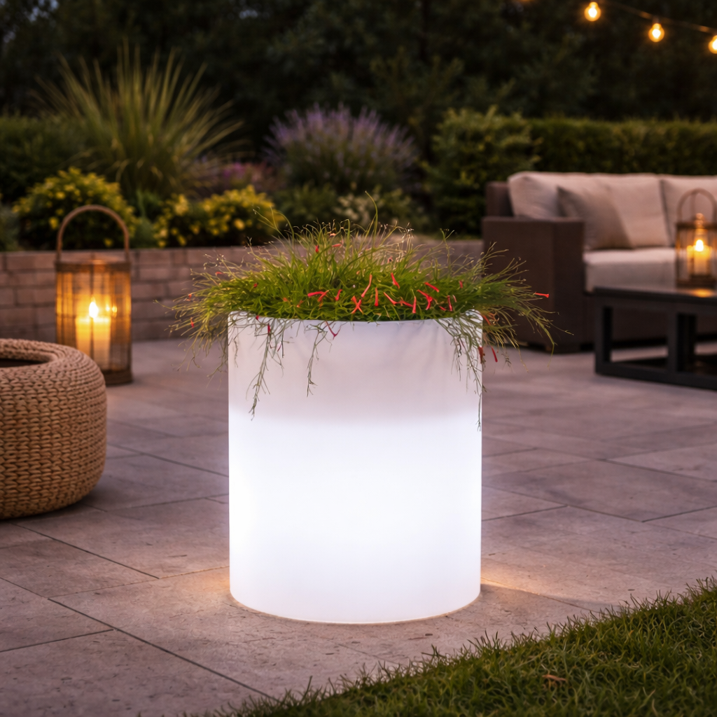 Vaso luminoso da giardino bianco con luce led 20w a risparmio energetico