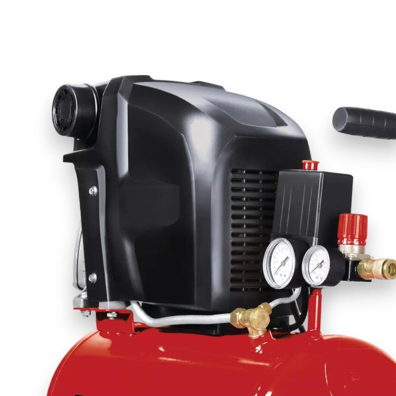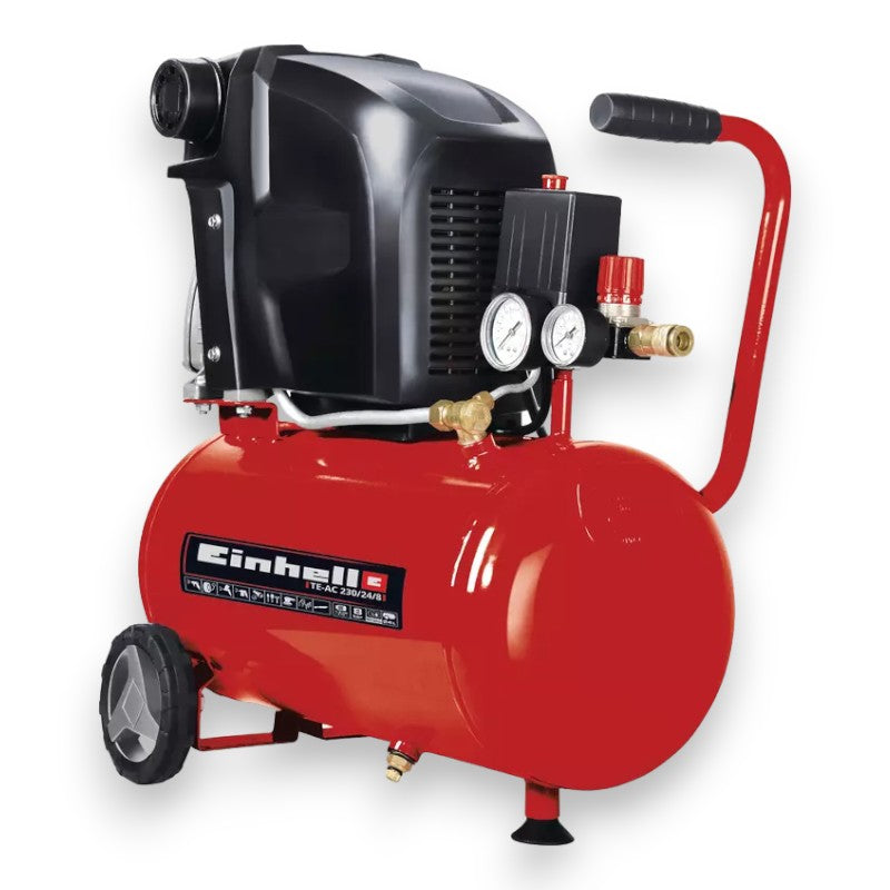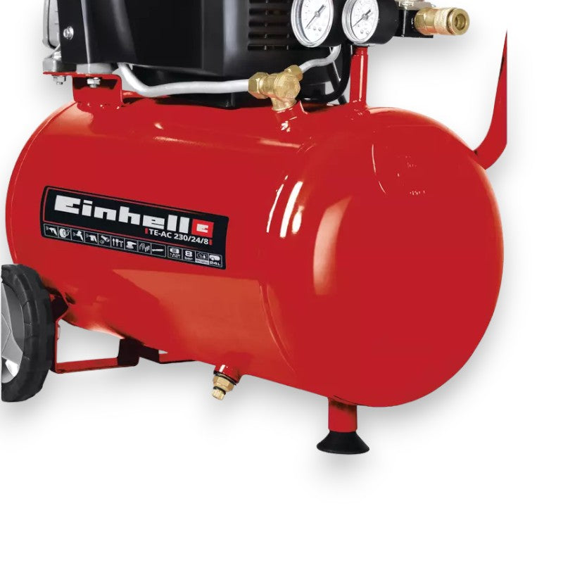 Compressore lubrificato a olio con valvola di sicurezza maniglia e ruota in gomma lt.24