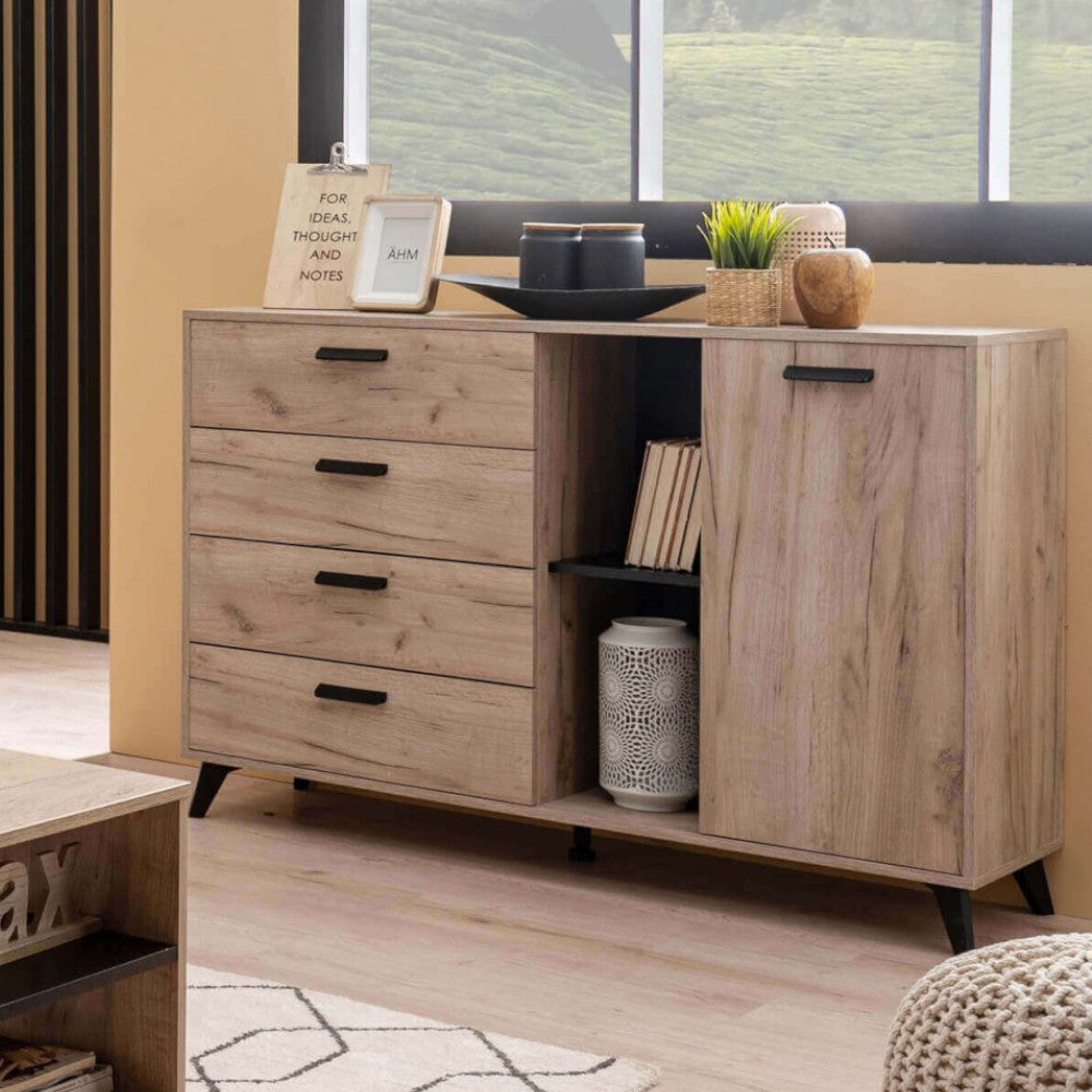 Mobile credenza madia da interno con 4 cassetti e 1 anta scorrevole struttura in legn...