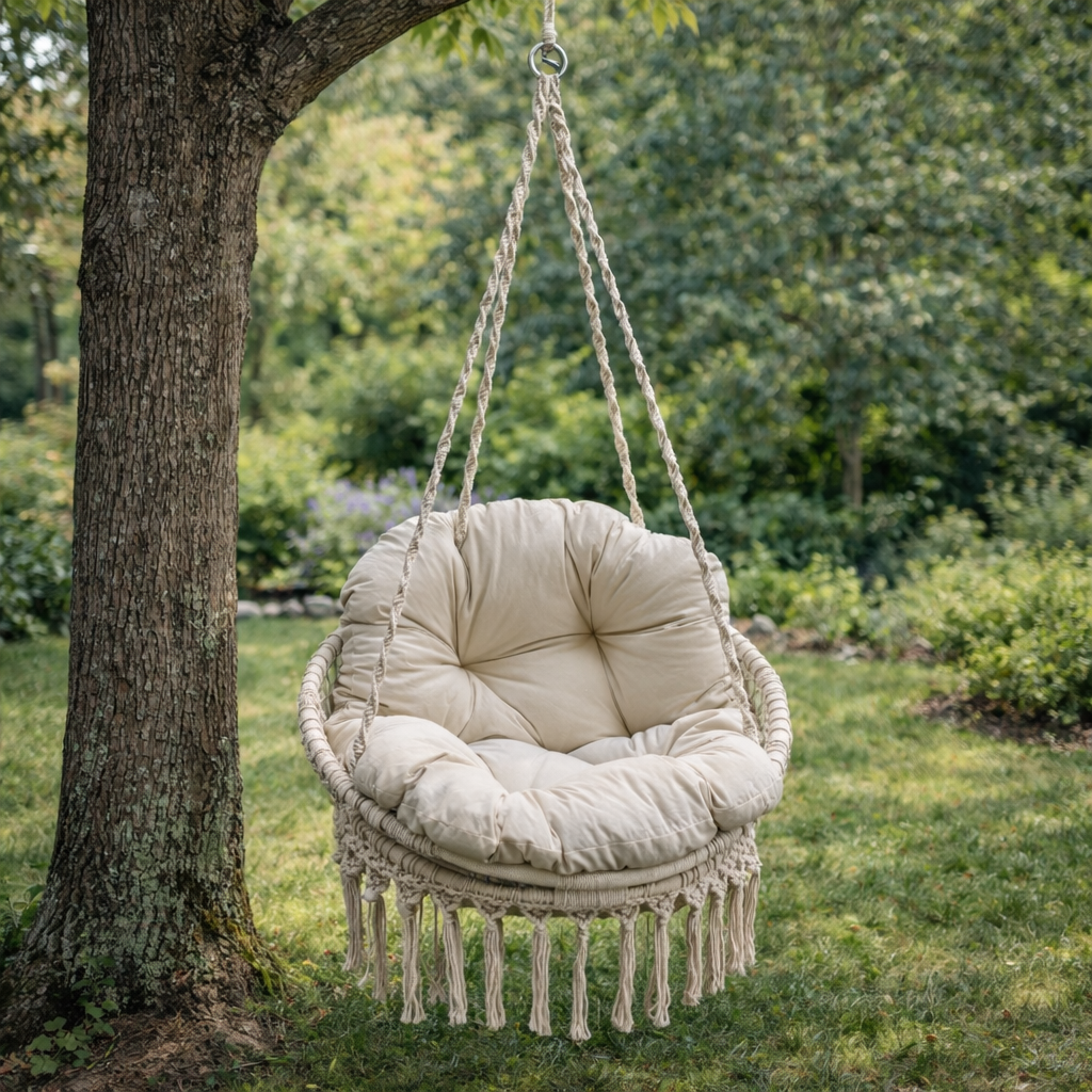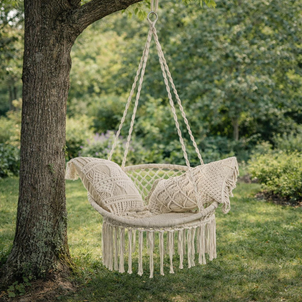 Amaca sospesa da giardino in cotone con supporto di legno in acacia