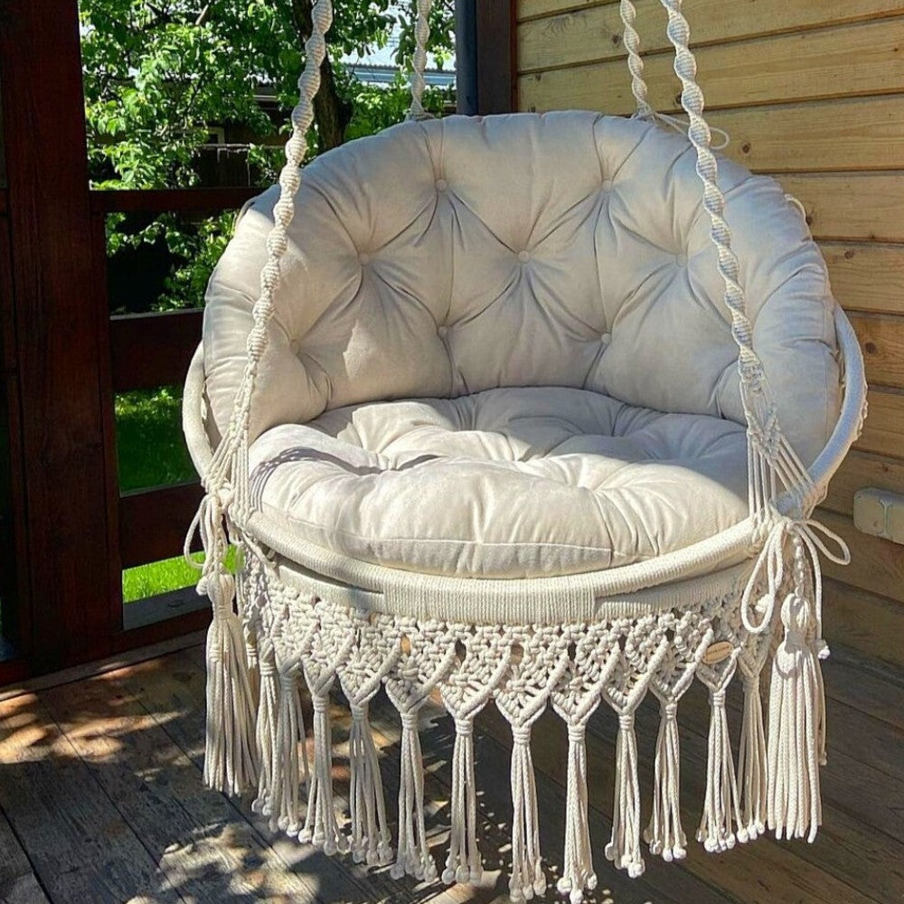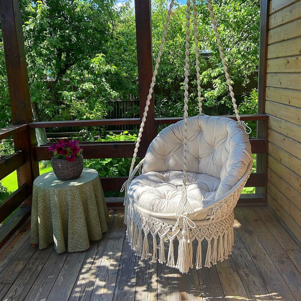 Amaca dondolo sospeso da giardino beige in cotone con struttura in legno di acacia 76...