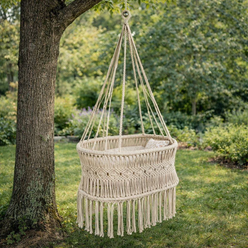 Amaca dondolo da giardino in cotone e supporto in legno di acacia