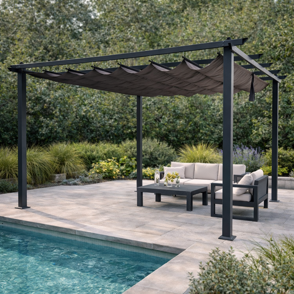 Gazebo pergola in alluminio 3x4 mt antracite con tetto chiudibile a carrucola Jodene
