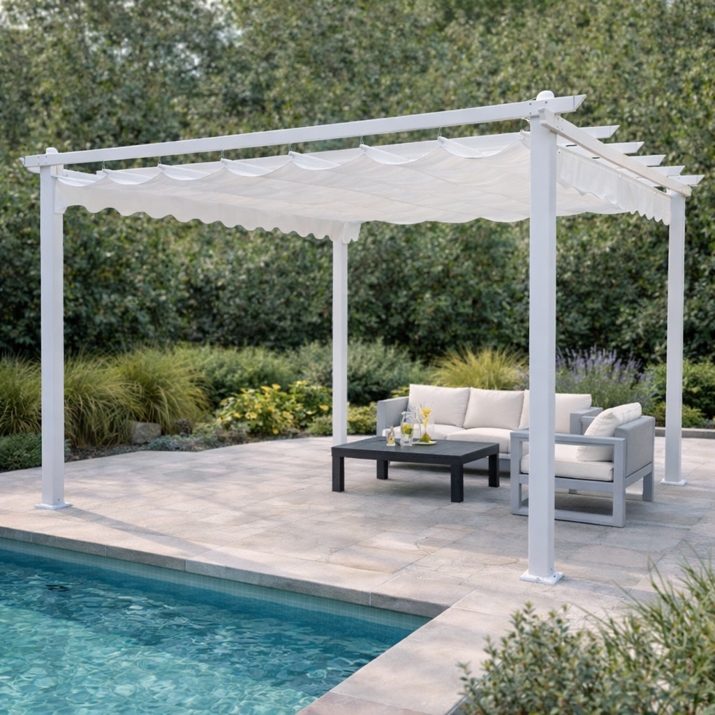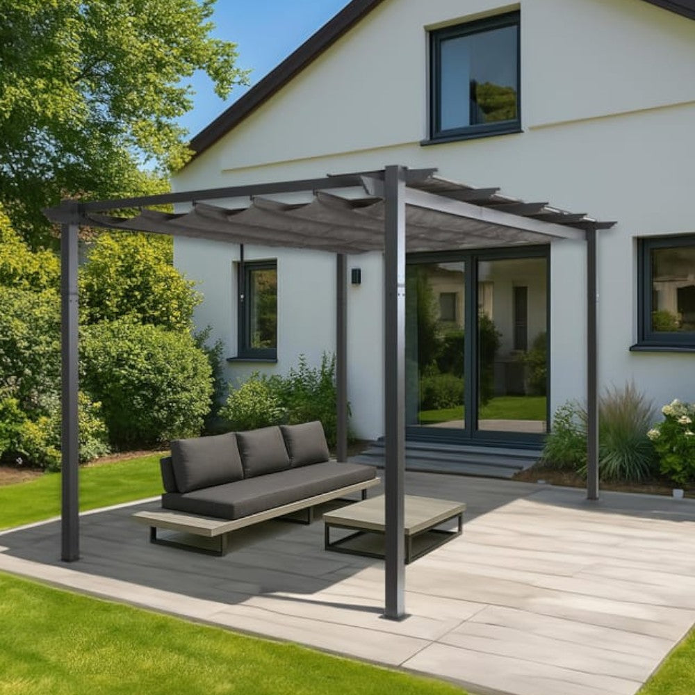 Gazebo pergola da esterno 3x3 mt in alluminio con telo apribile a carrucola