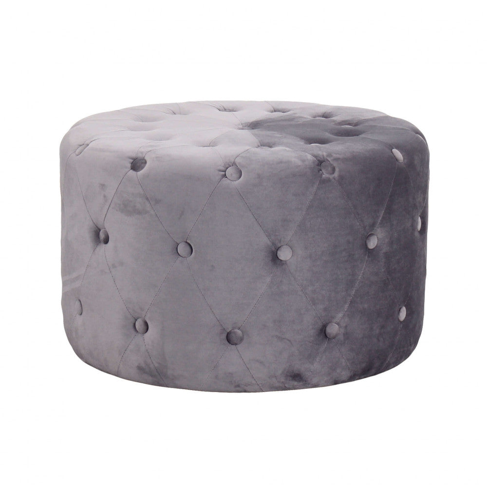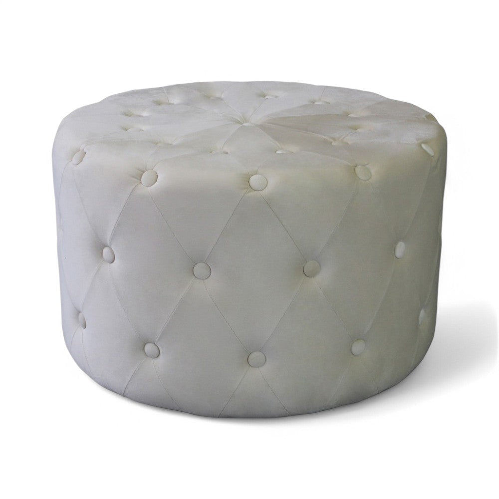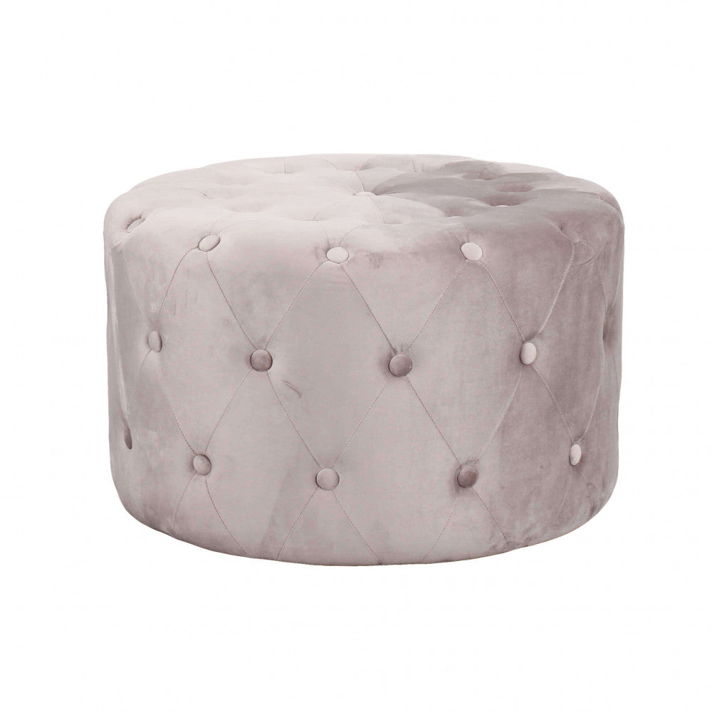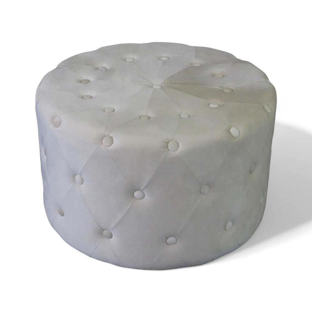 Pouf rotondo in velluto beige design moderno bottonato con diametro 67xH41 cm