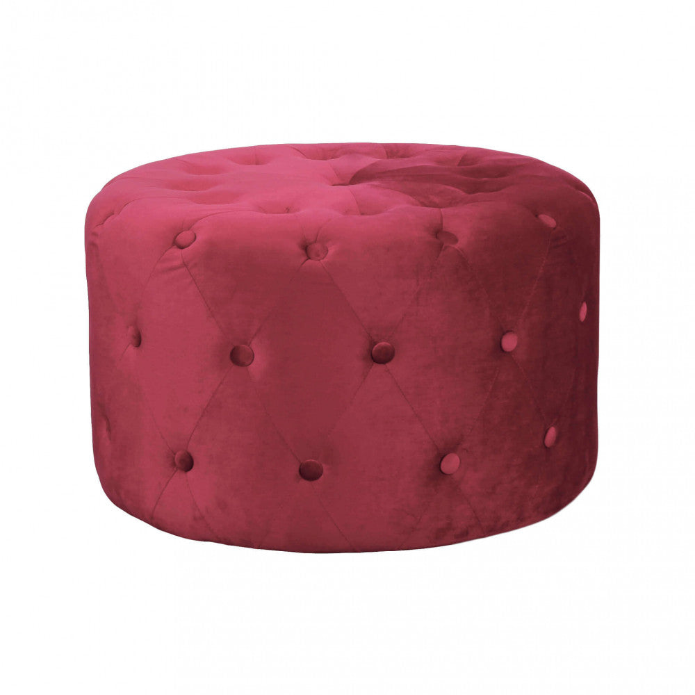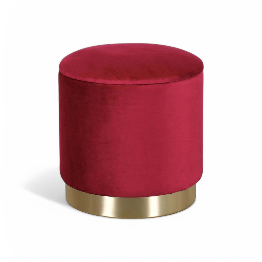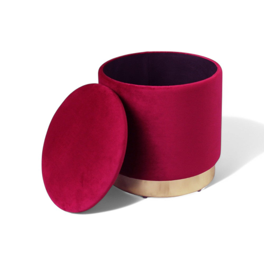 Pouf contenitore rotondo in velluto rosso elegante e spazioso diametro 37xH40 cm