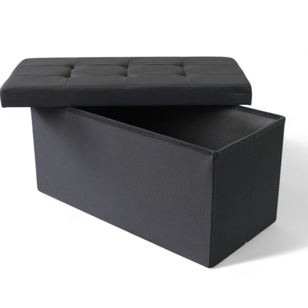 Pouf contenitore rettangolare in stoffa nero 76x38xH38 cm