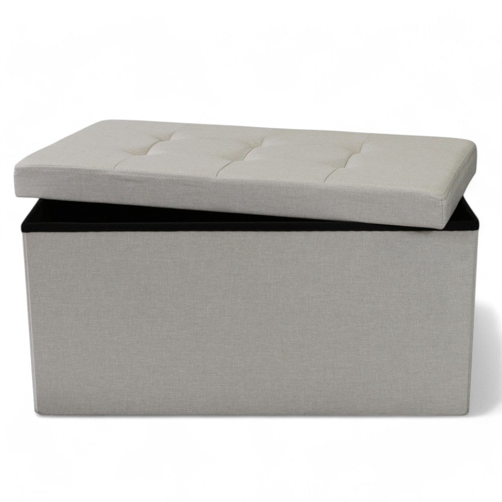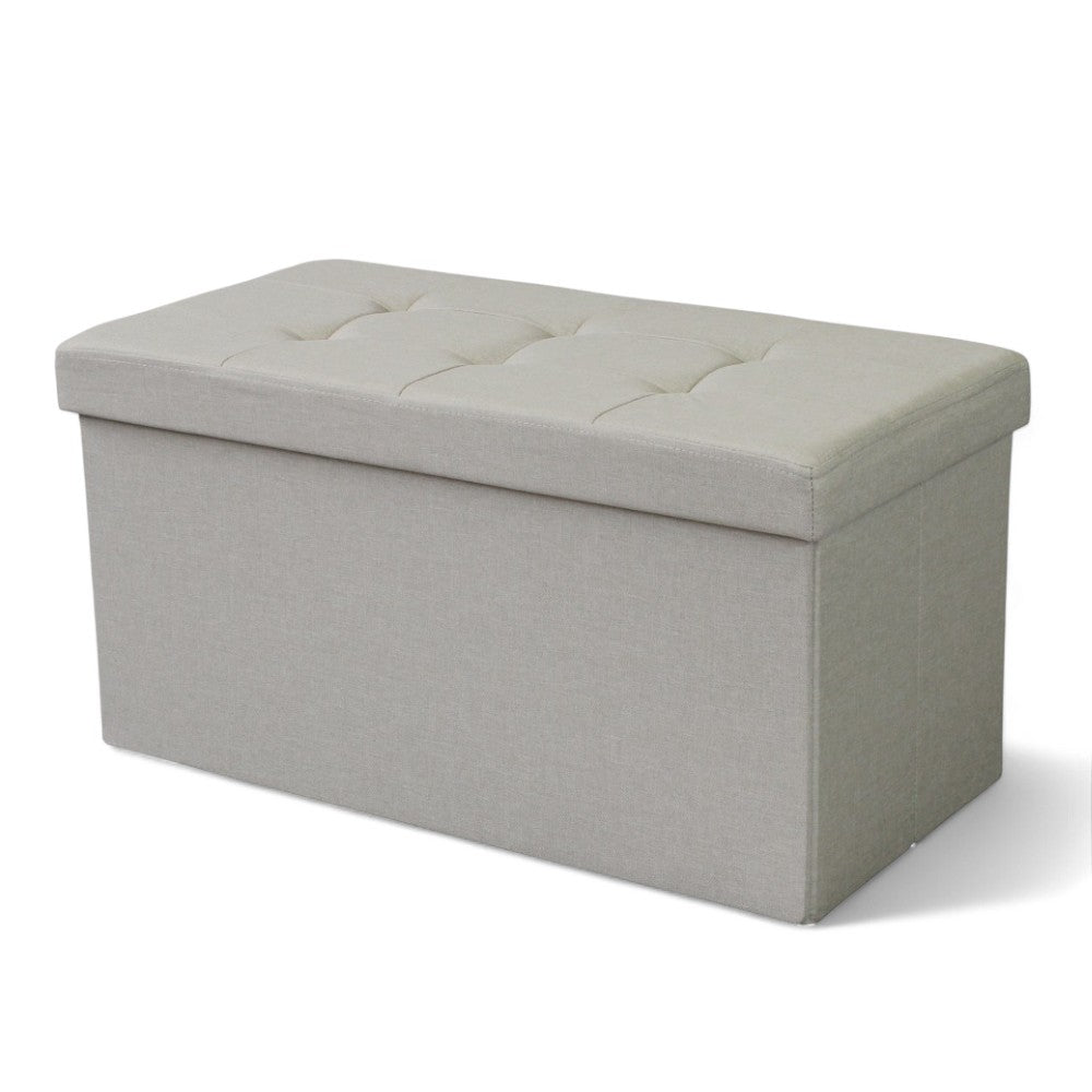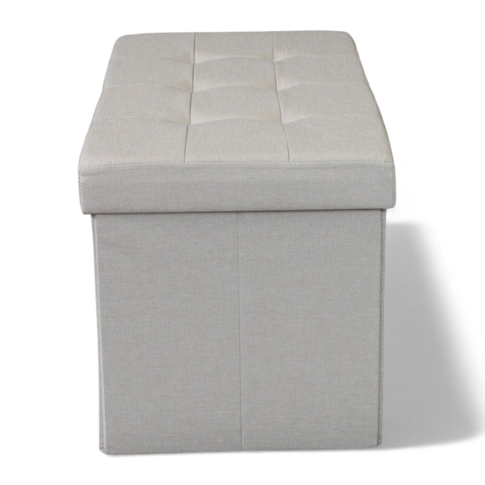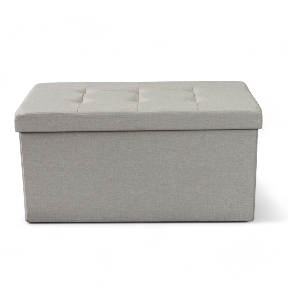 Pouf contenitore rettangolare in tessuto tortora con dimensioni 76x38x38 cm per salot...