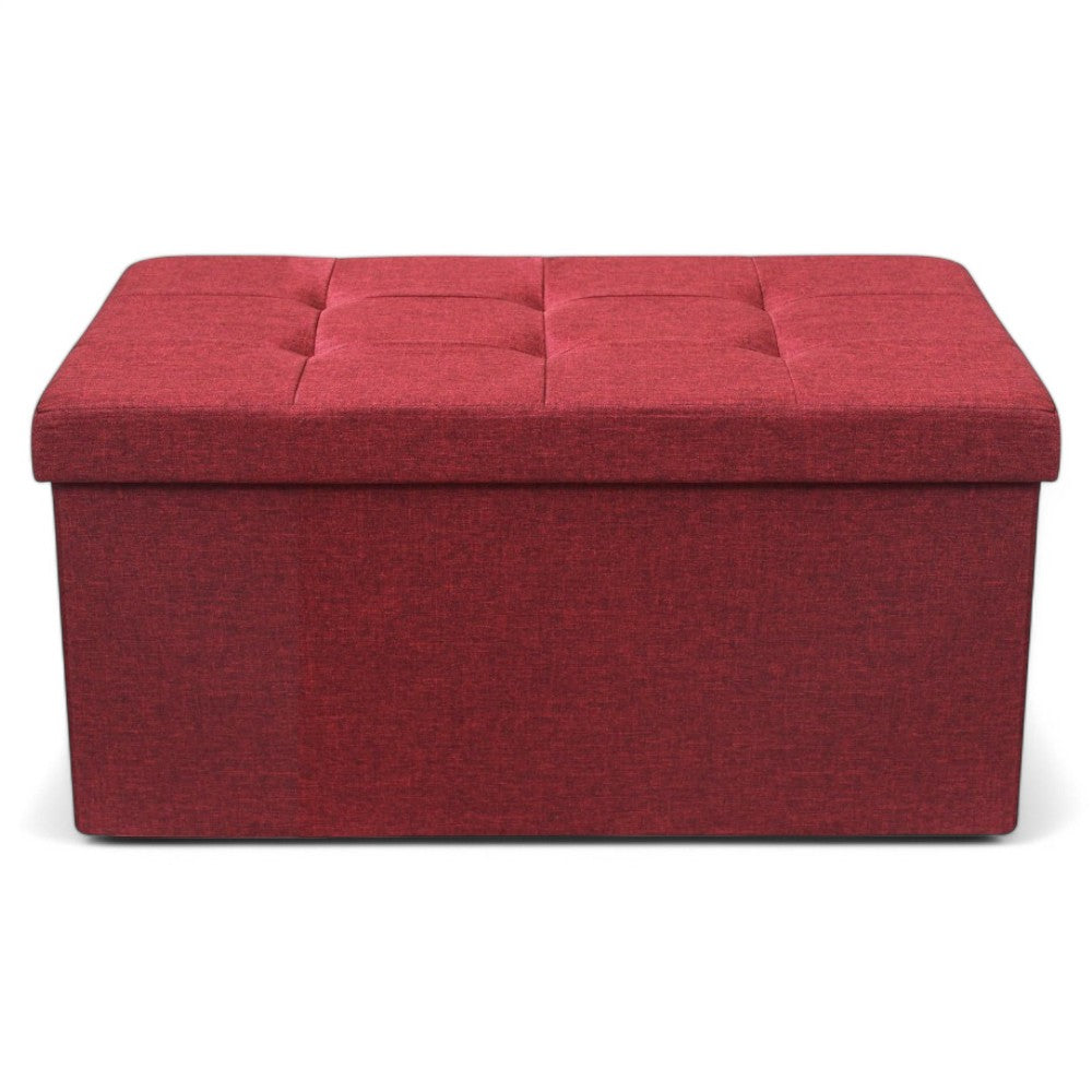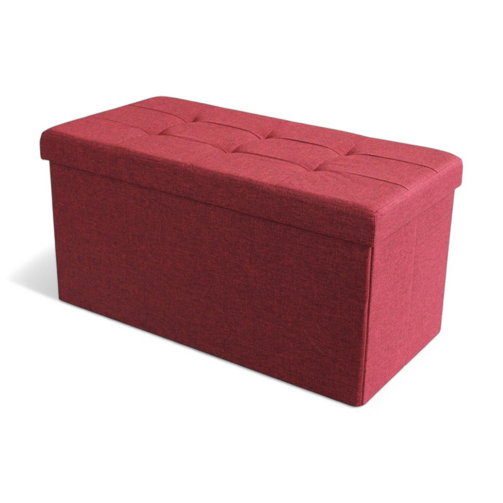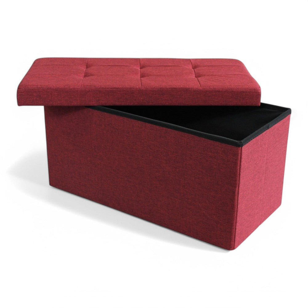 Pouf contenitore rettangolare in tessuto rosso 76x38xH38 cm