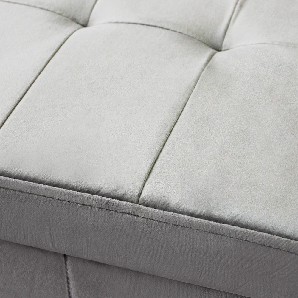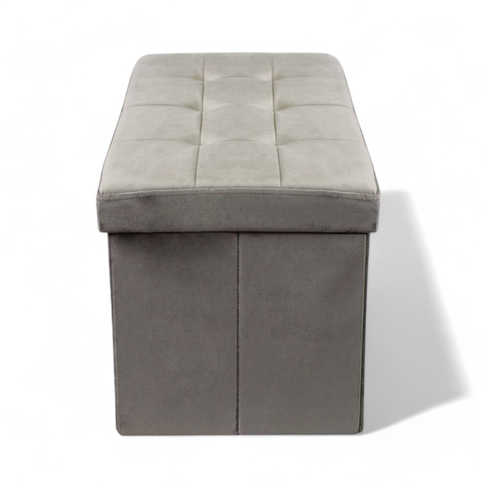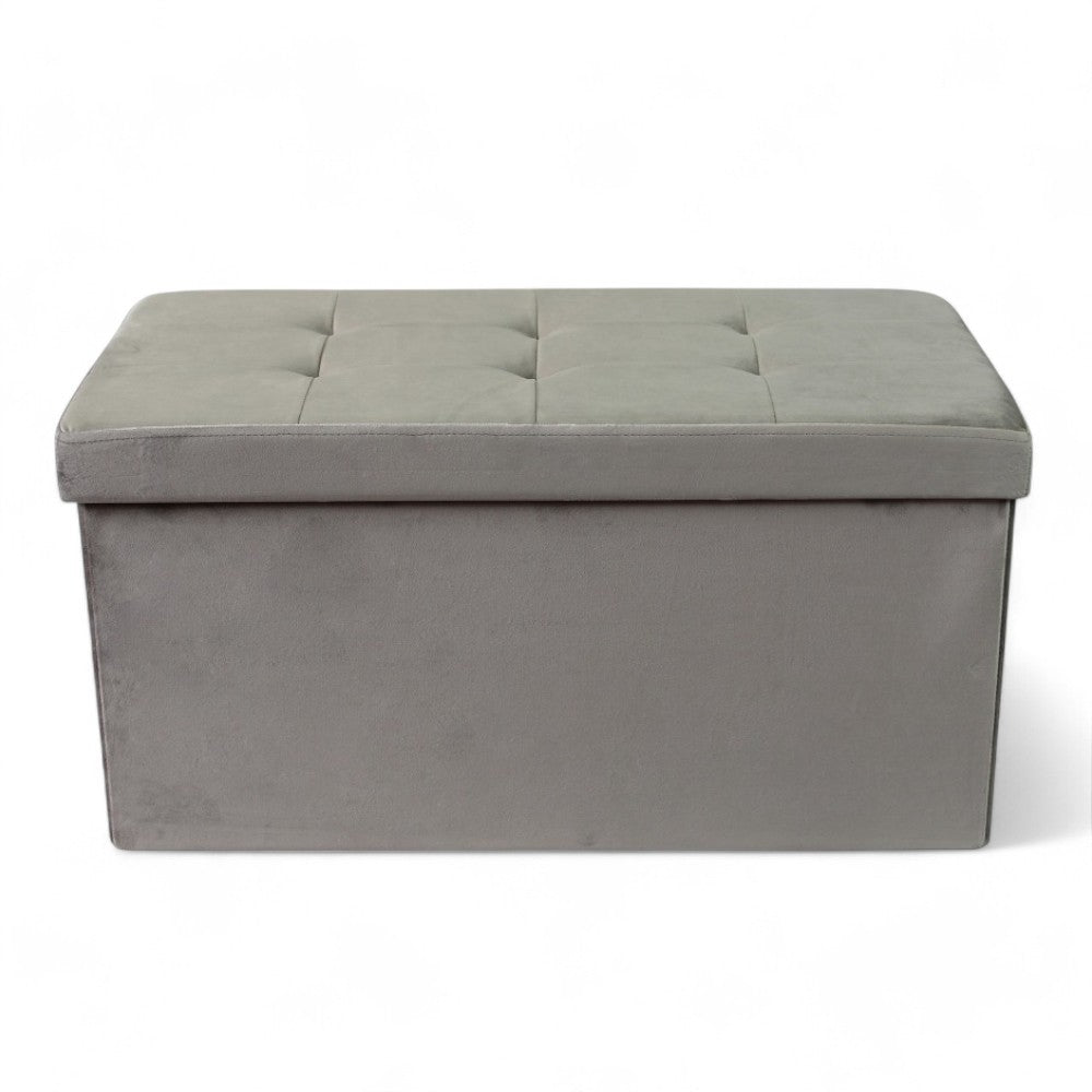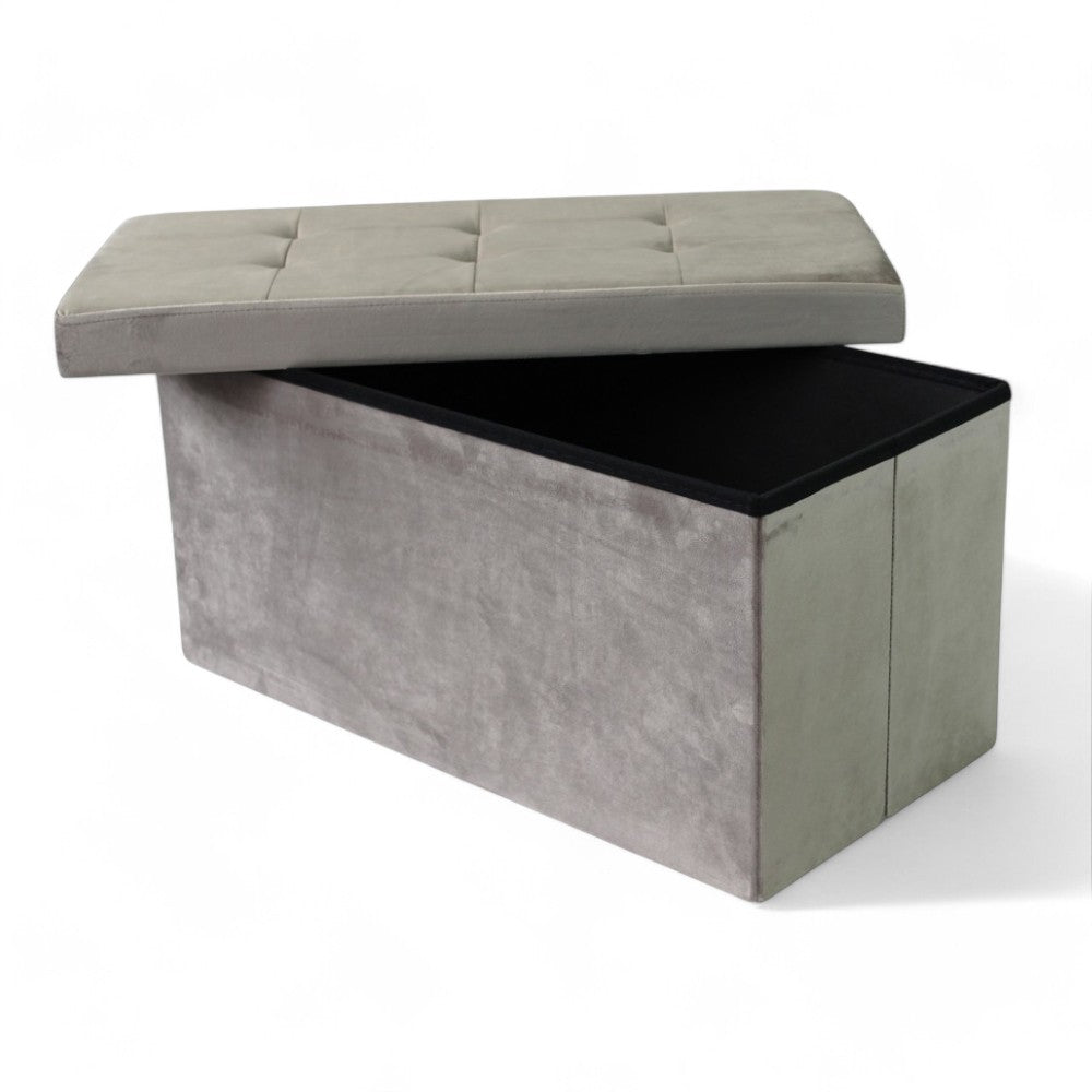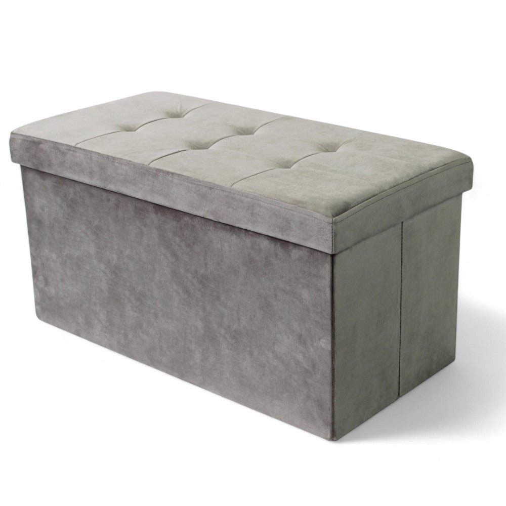 Pouf contenitore rettangolare in velluto colore tortora con spazio di archiviazione p...