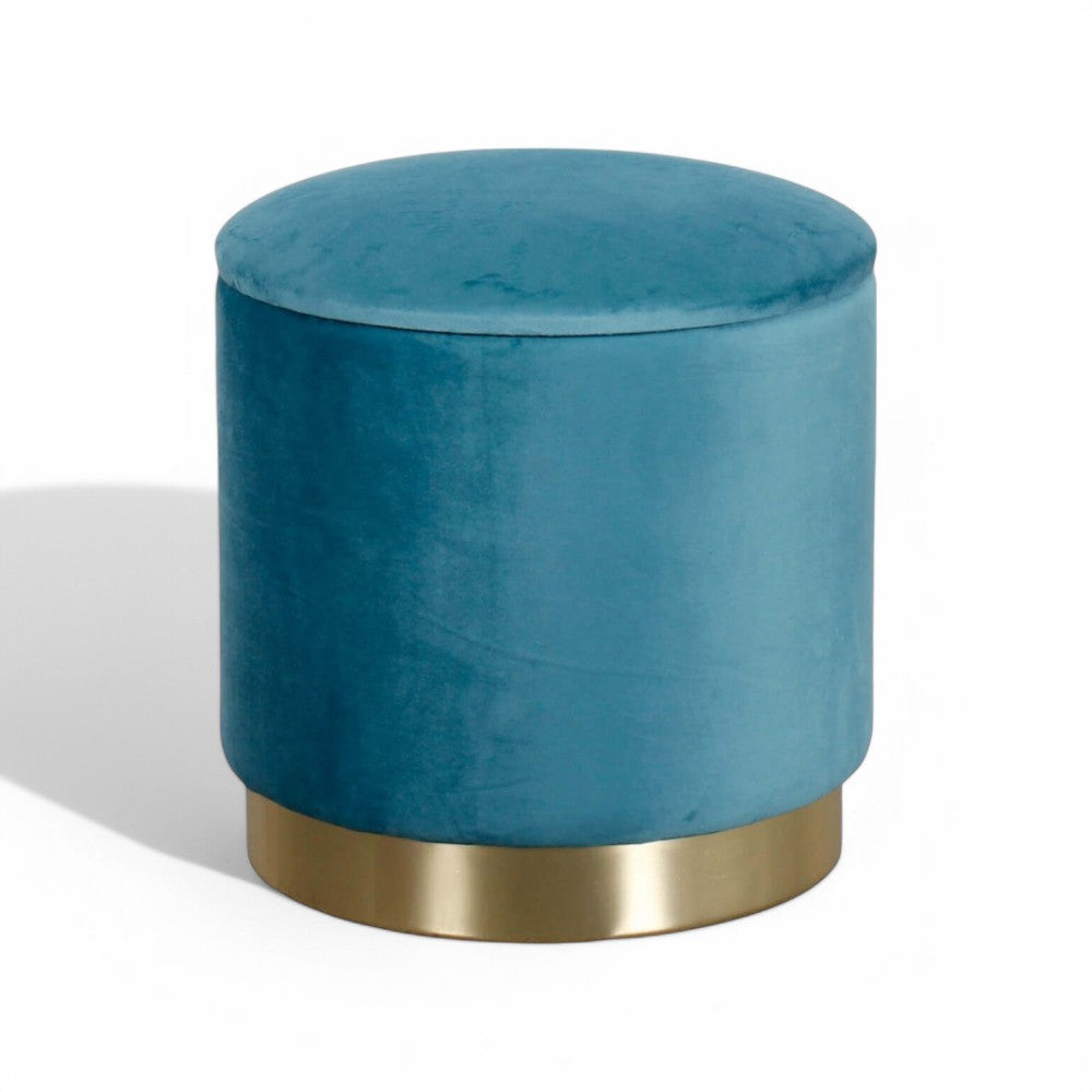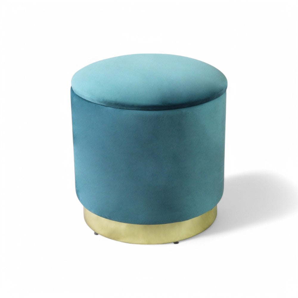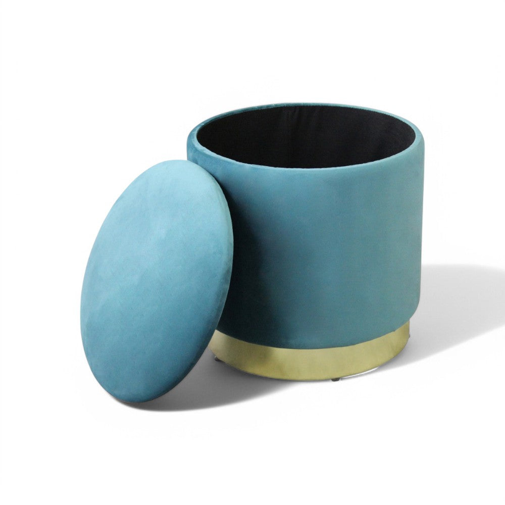 Pouf contenitore rotondo in velluto ottanio con diametro 37xH40 cm