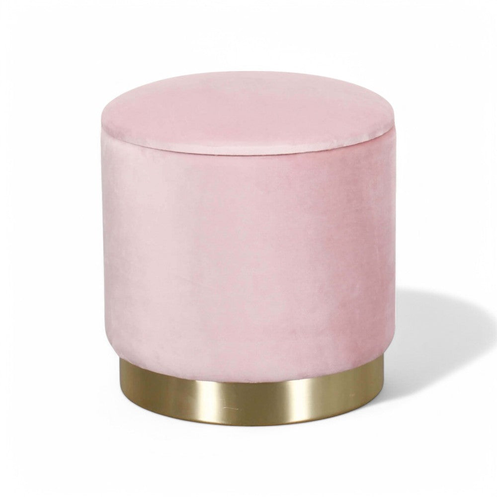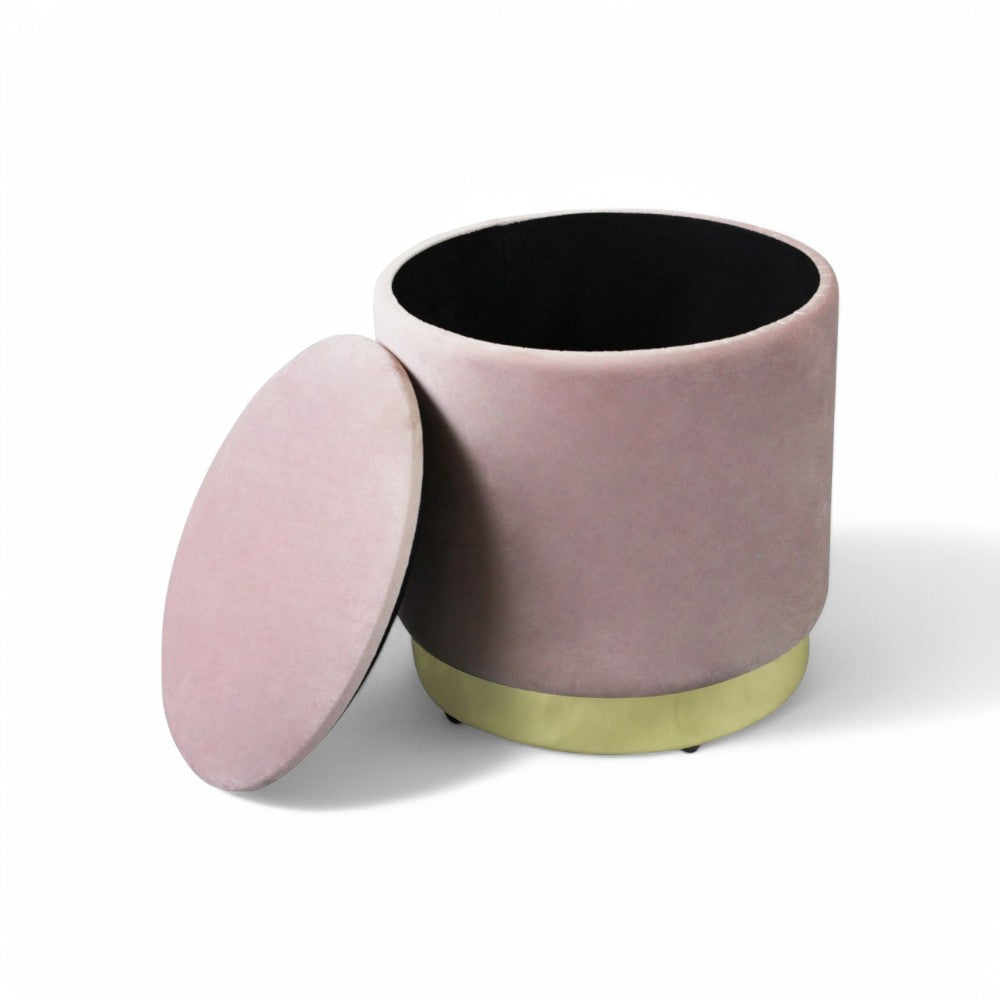 Pouf contenitore rotondo velluto rosa con diametro 37xH40 cm