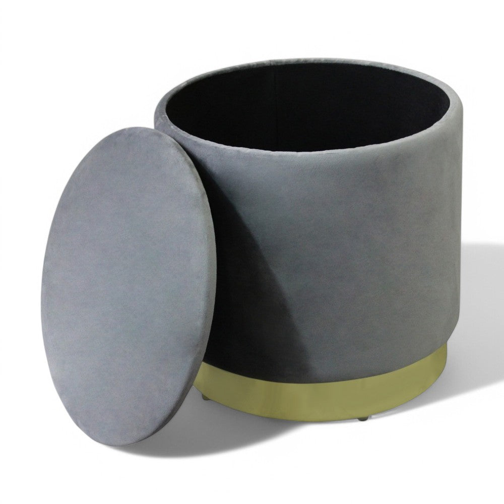 Pouf contenitore rotondo velluto tortora elegante con diametro 37xH40 cm