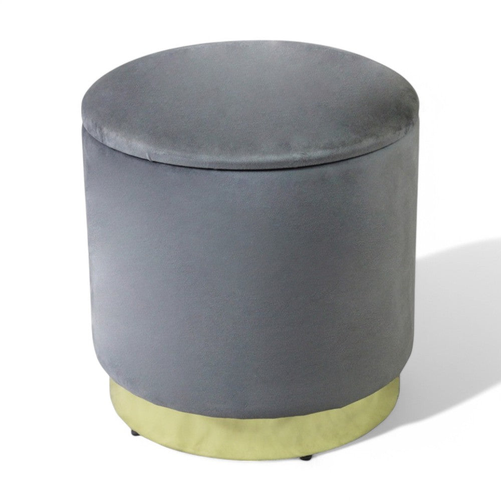 Pouf contenitore rotondo velluto grigio scuro versatile e spazioso con diametro 37xH4...