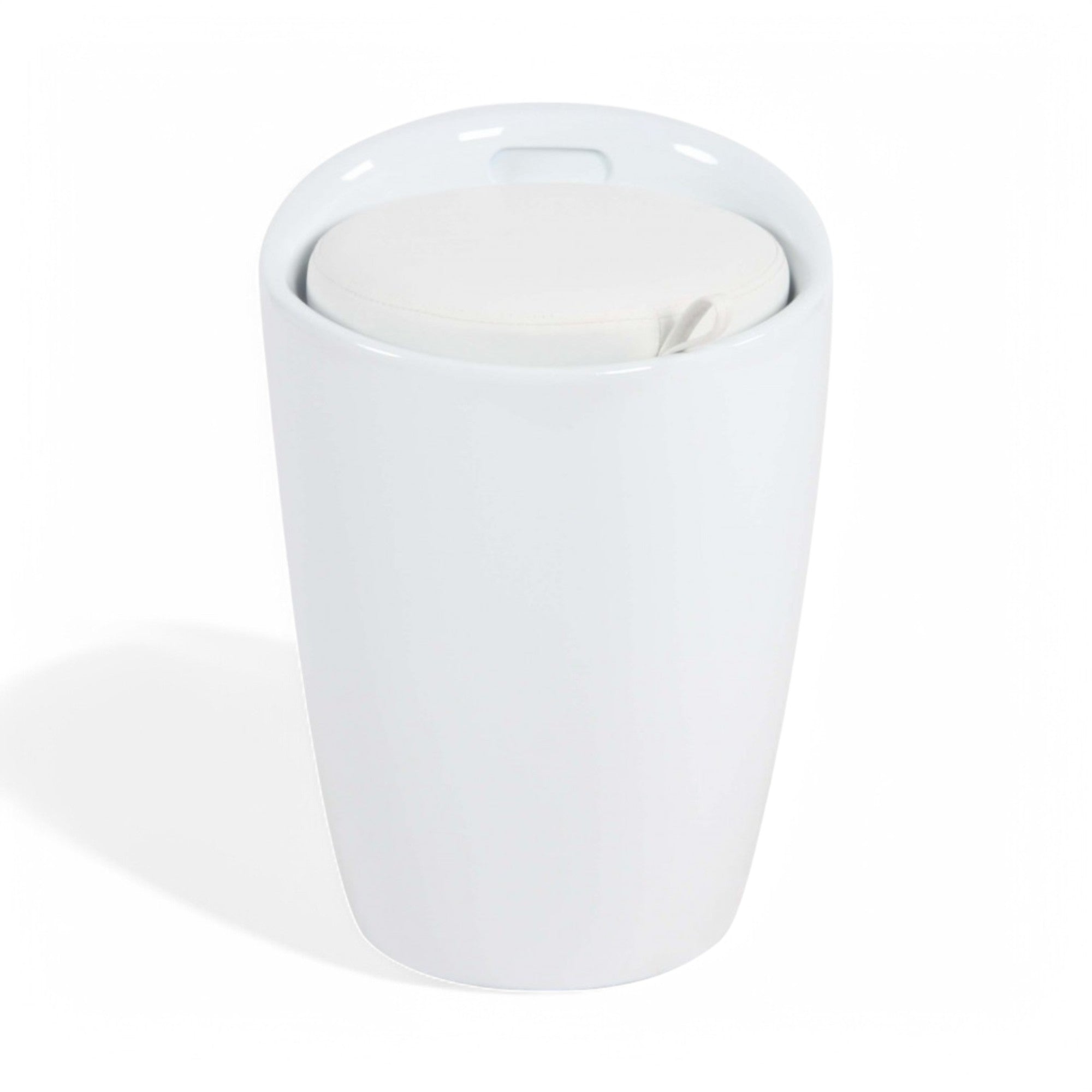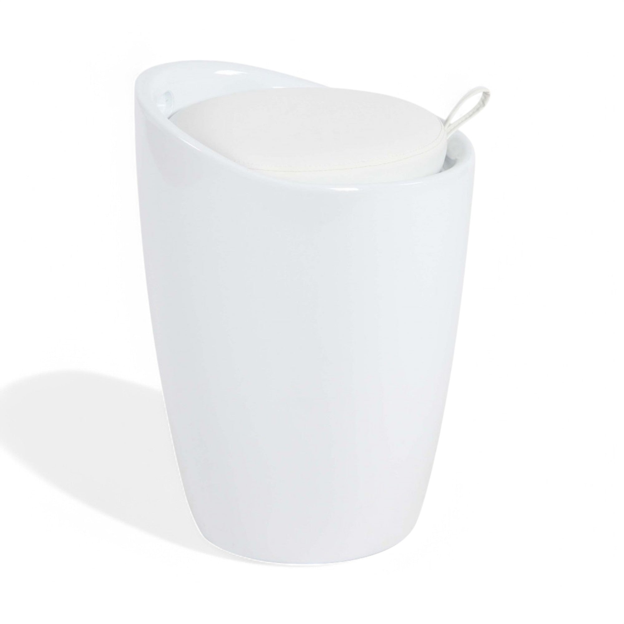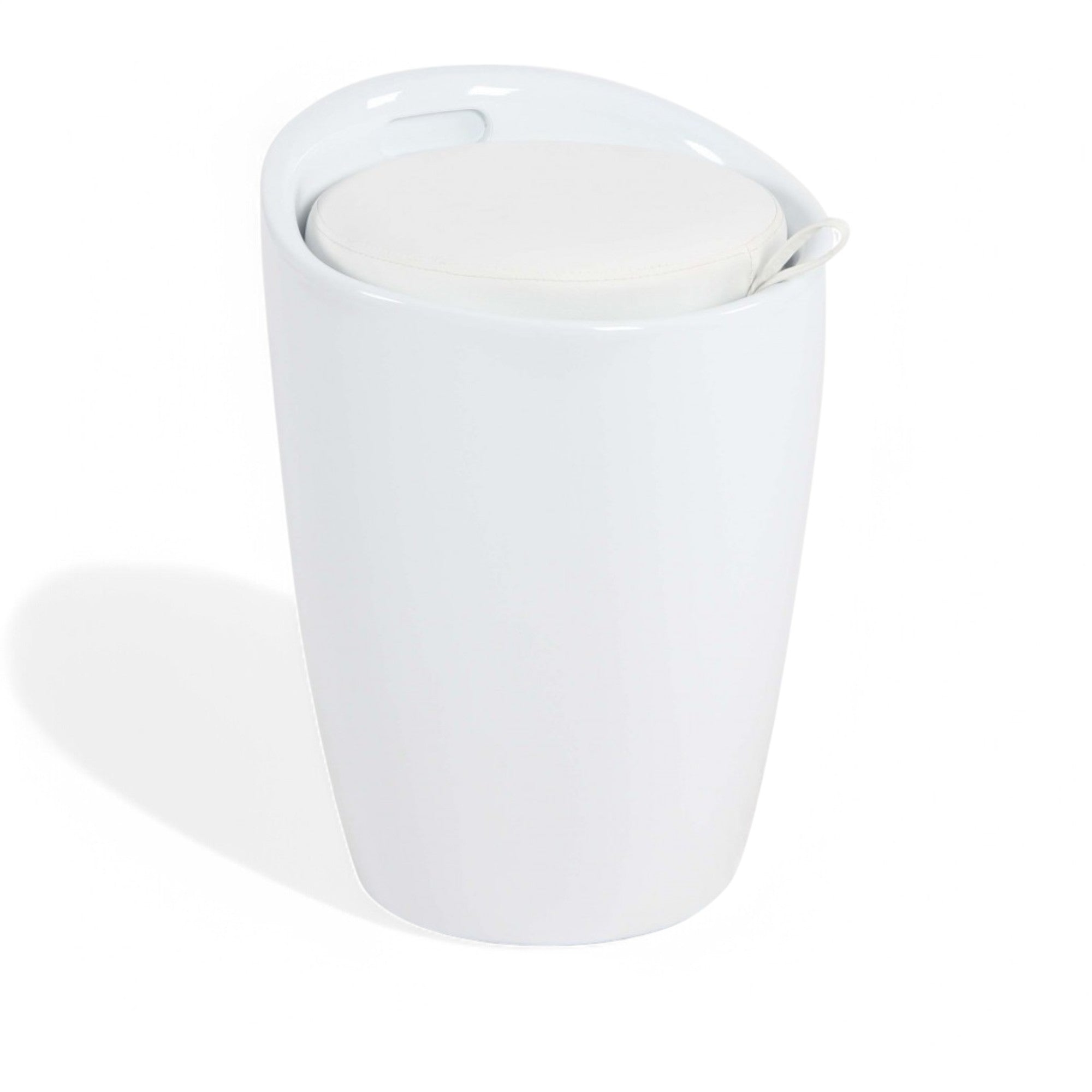 Sgabello pouf in abs con cuscino ecopelle bianco 36x36xH50 cm