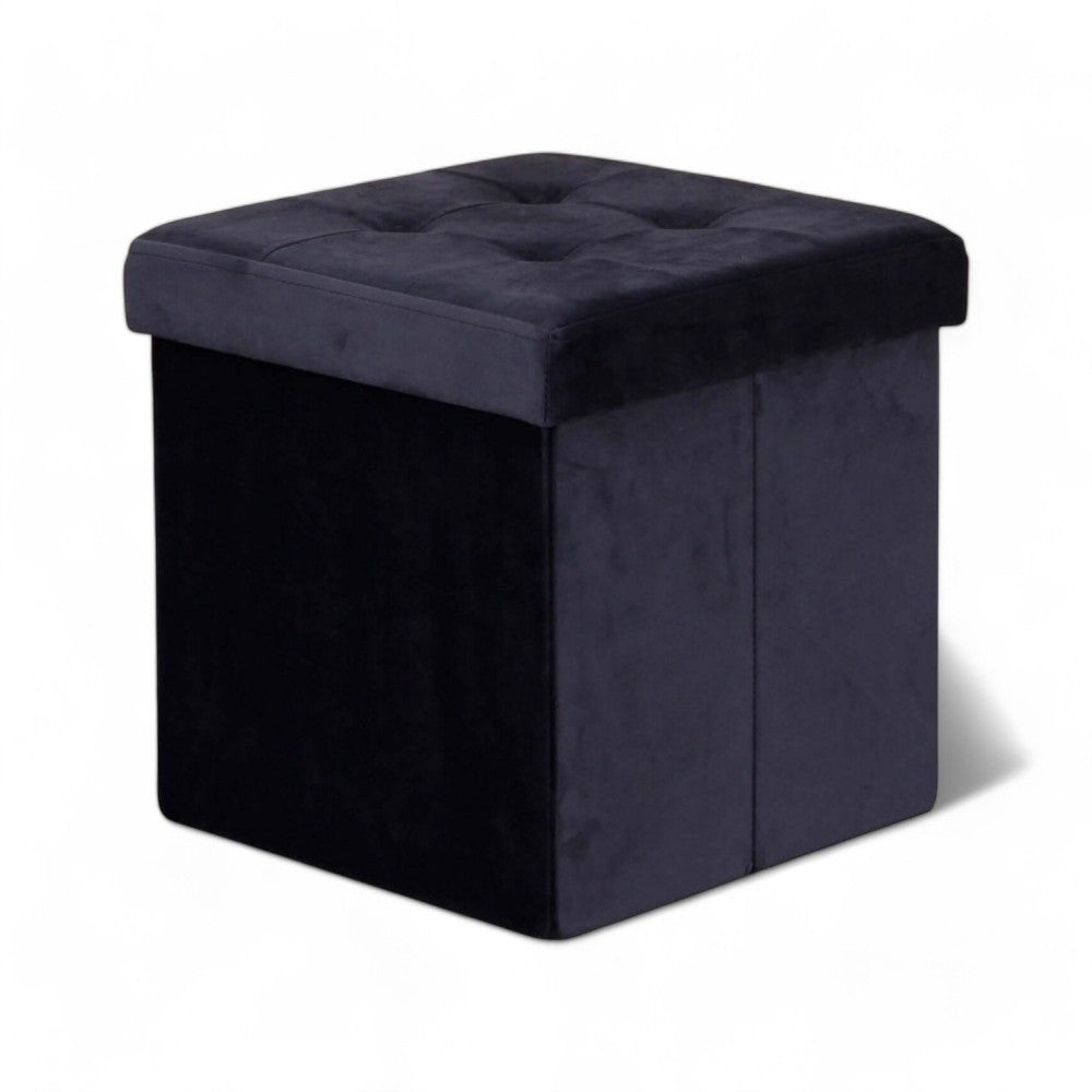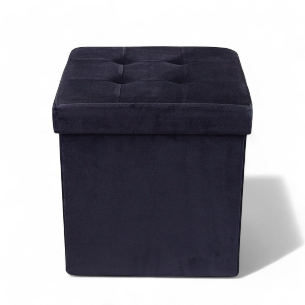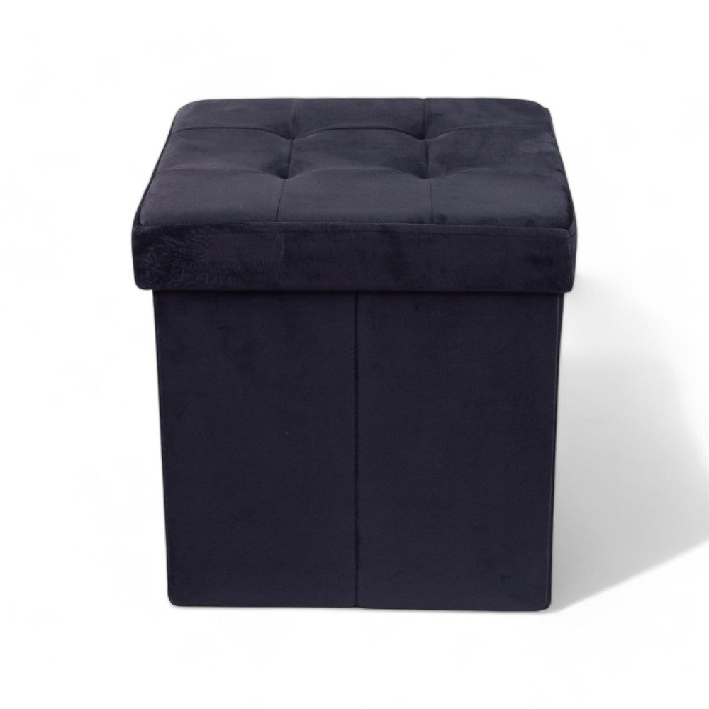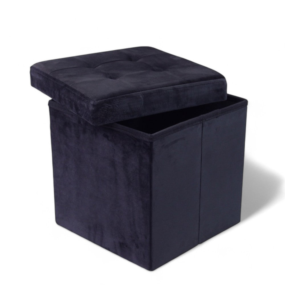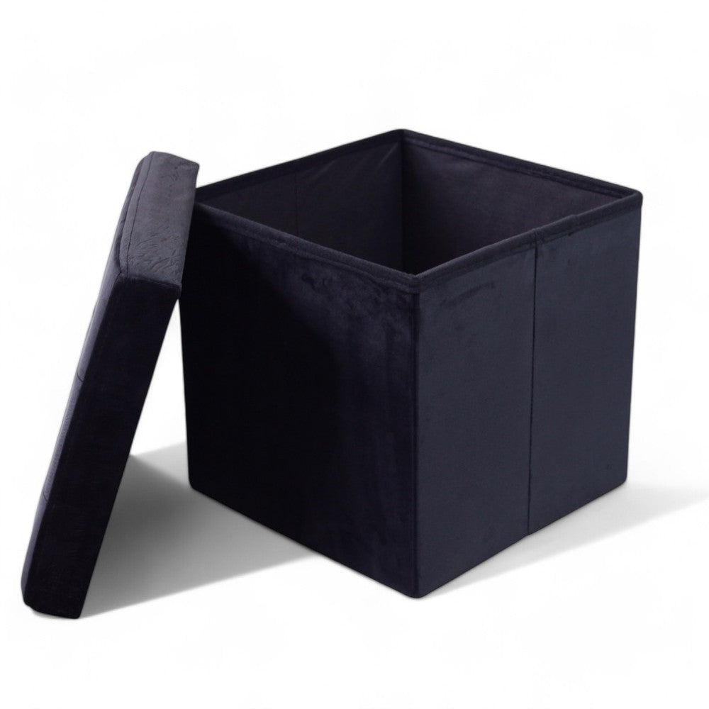 Pouf contenitore quadrato velluto nero elegante e pratico ideale per ottimizzare lo s...