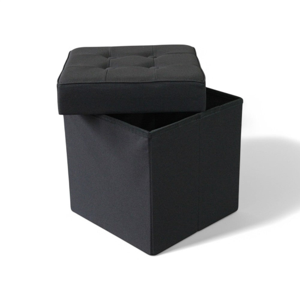 Pouf contenitore quadrato in stoffa nero 38x38xH40 cm